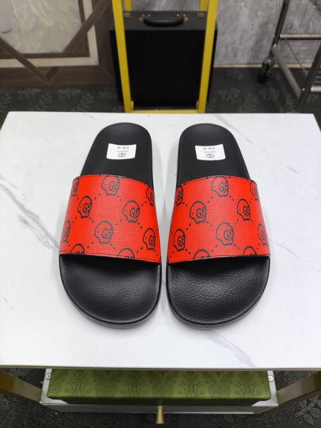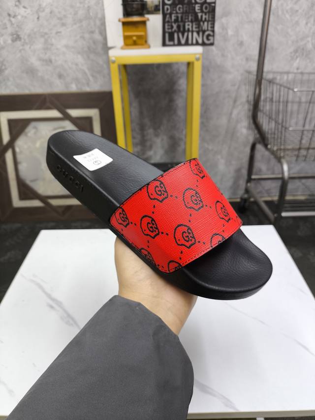 / 实价 情侣款 GUCCI-古奇 百搭休闲拖鞋,进口原版材质,羊皮内里 高档舒适,原版大底轻盈耐磨!纯手工制作,细节决定品质!37-44 35.36.46.47定