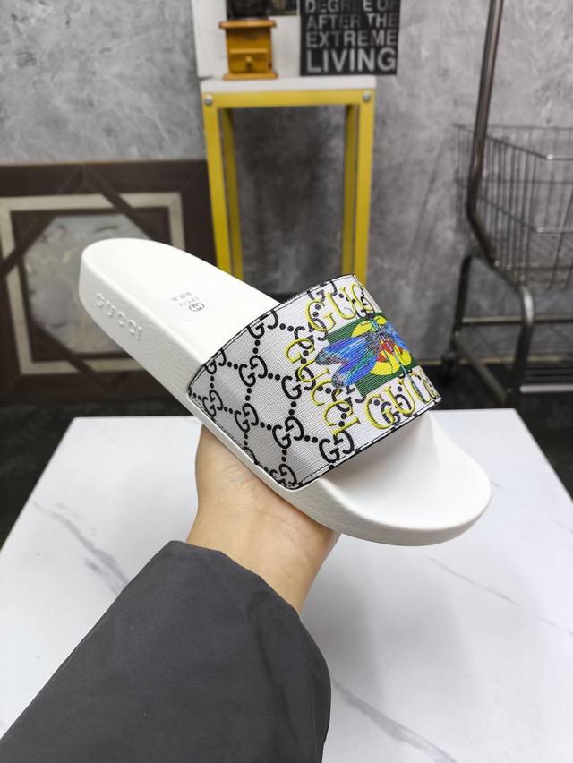 GUCCI-古奇 百搭休闲拖鞋,进口原版材质,羊皮内里 高档舒适,原版大底轻盈耐磨!纯手工制作,细节决定品质!37-44 35.36.46.47定做不退换 Ms