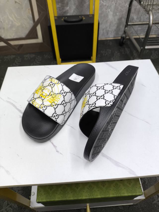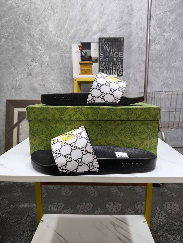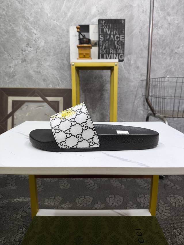 / 实价 情侣款 GUCCI-古奇 百搭休闲拖鞋,进口原版材质,羊皮内里 高档舒适,原版大底轻盈耐磨!纯手工制作,细节决定品质!37-44 35.36.46.47定