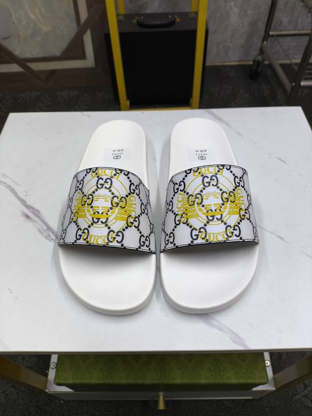 / 实价 情侣款 GUCCI-古奇 百搭休闲拖鞋,进口原版材质,羊皮内里 高档舒适,原版大底轻盈耐磨!纯手工制作,细节决定品质!37-44 35.36.46.47定