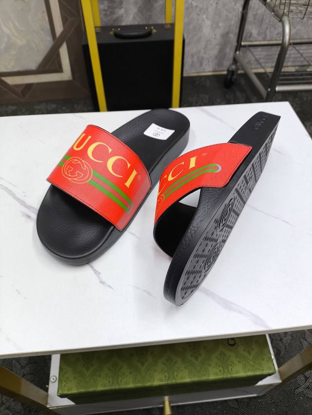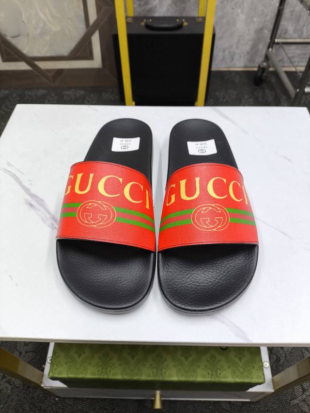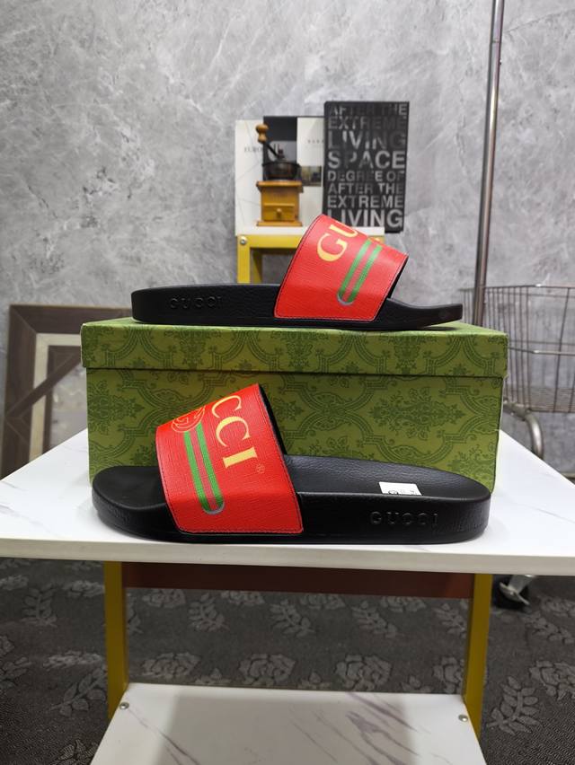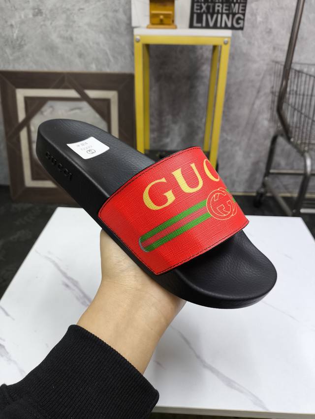 / 实价 情侣款 GUCCI-古奇 百搭休闲拖鞋,进口原版材质,羊皮内里 高档舒适,原版大底轻盈耐磨!纯手工制作,细节决定品质!37-44 35.36.46.47定