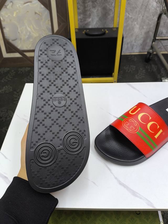 GUCCI-古奇 百搭休闲拖鞋,进口原版材质,羊皮内里 高档舒适,原版大底轻盈耐磨!纯手工制作,细节决定品质!37-44 35.36.46.47定做不退换 Ms