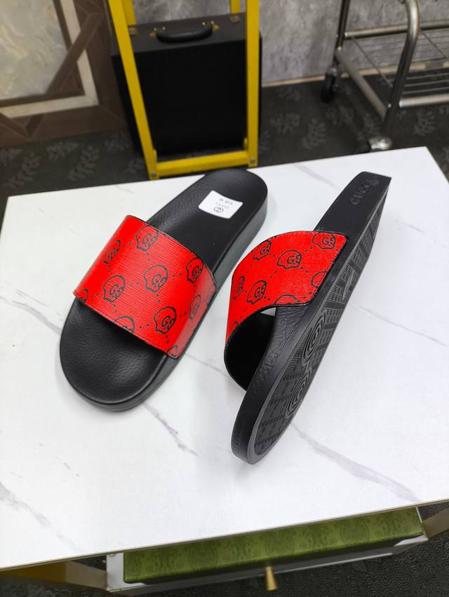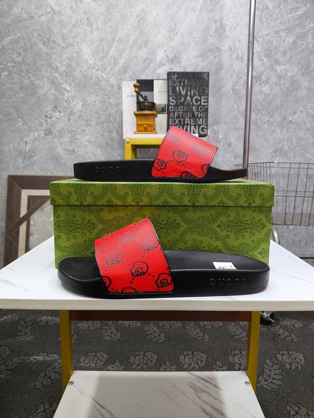 / 实价 情侣款 GUCCI-古奇 百搭休闲拖鞋,进口原版材质,羊皮内里 高档舒适,原版大底轻盈耐磨!纯手工制作,细节决定品质!37-44 35.36.46.47定