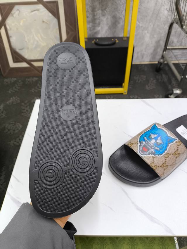 / 实价 情侣款 GUCCI-古奇 百搭休闲拖鞋,进口原版材质,羊皮内里 高档舒适,原版大底轻盈耐磨!纯手工制作,细节决定品质!37-44 35.36.46.47定