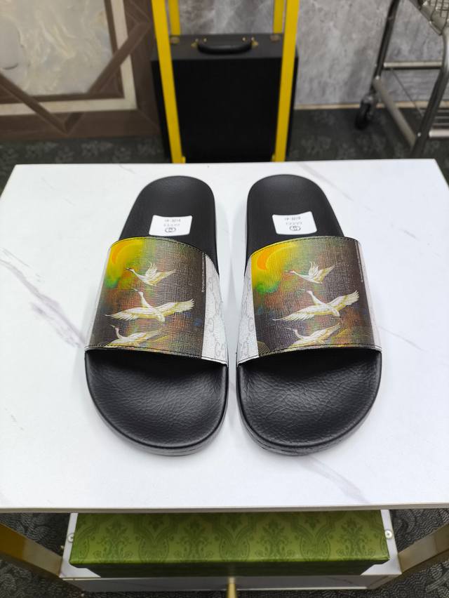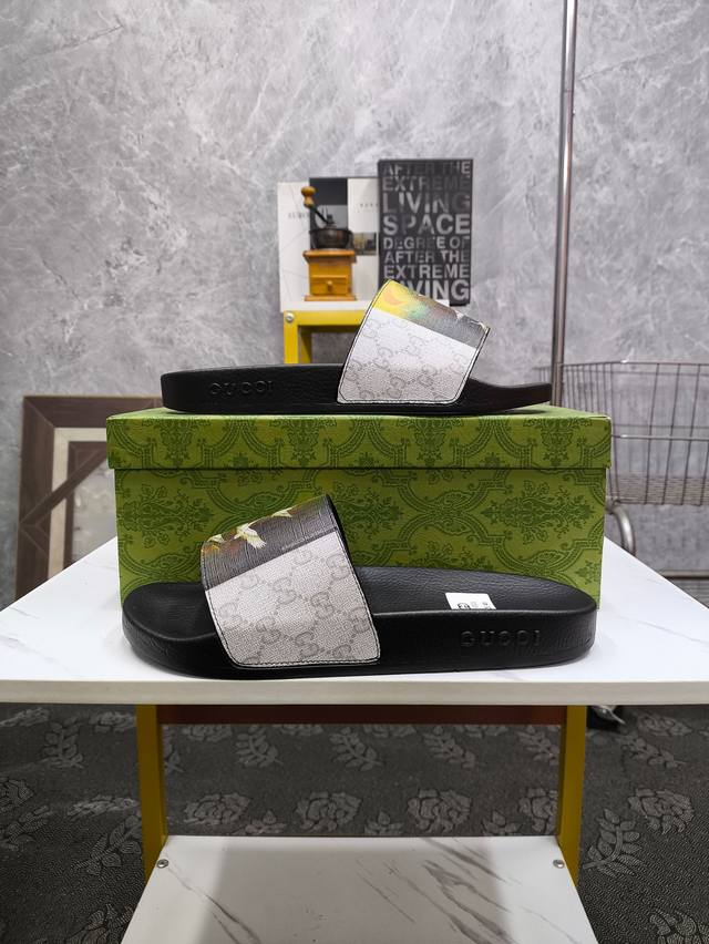 / 实价 情侣款 GUCCI-古奇 百搭休闲拖鞋,进口原版材质,羊皮内里 高档舒适,原版大底轻盈耐磨!纯手工制作,细节决定品质!37-44 35.36.46.47定