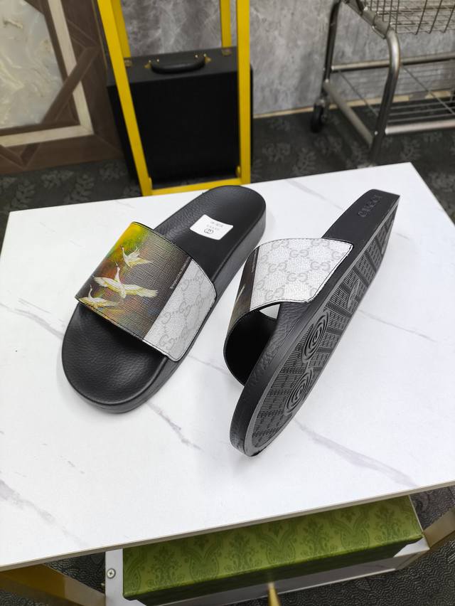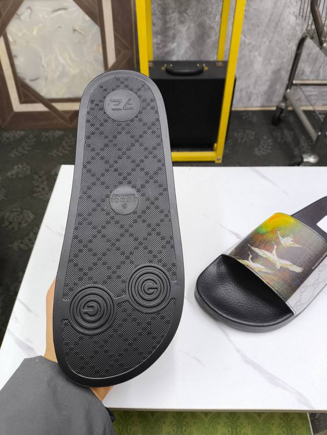 GUCCI-古奇 百搭休闲拖鞋,进口原版材质,羊皮内里 高档舒适,原版大底轻盈耐磨!纯手工制作,细节决定品质!37-44 35.36.46.47定做不退换 Ms