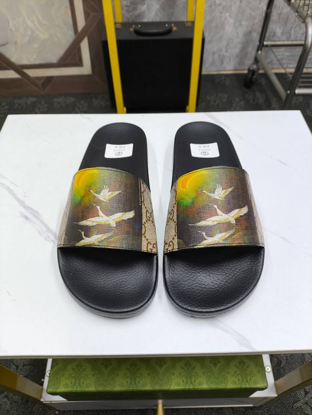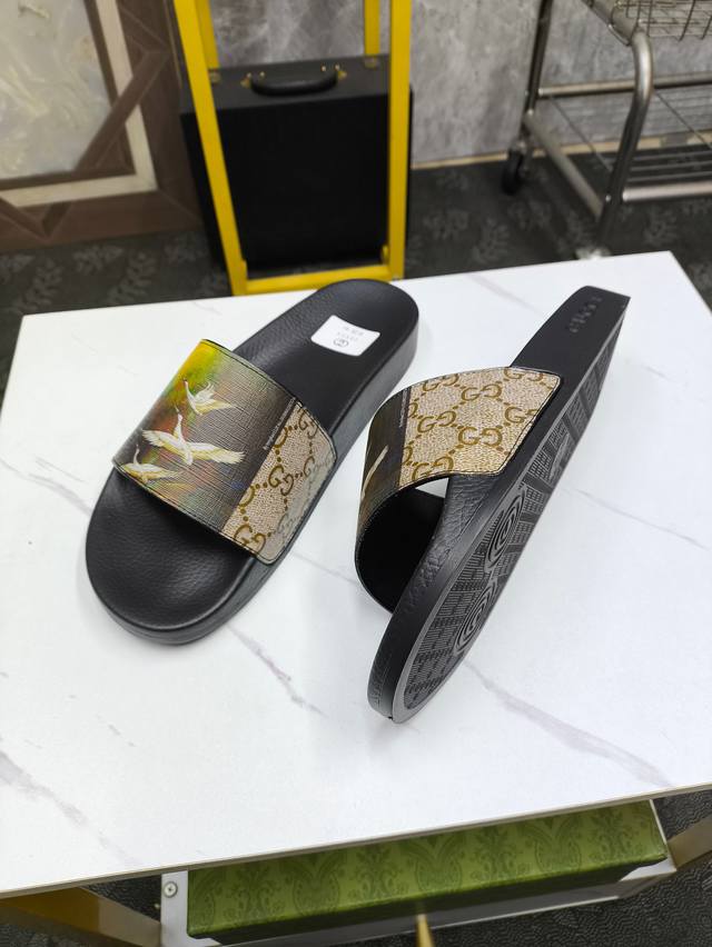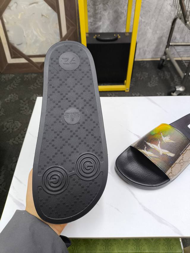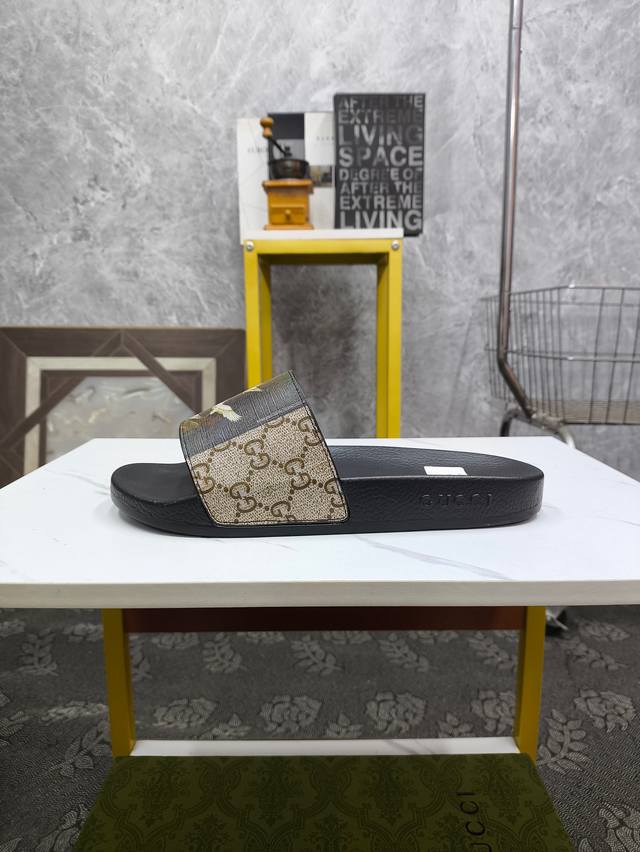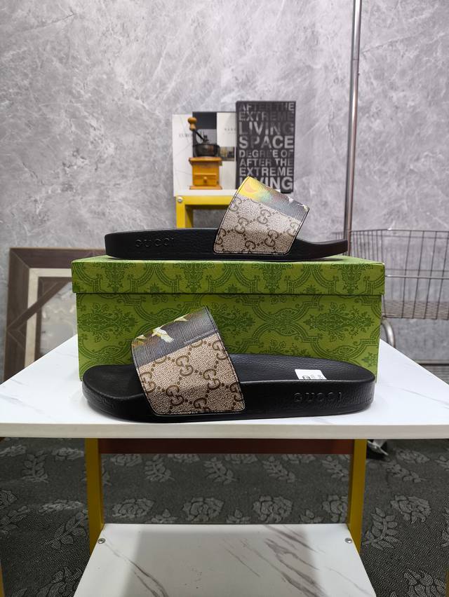 GUCCI-古奇 百搭休闲拖鞋,进口原版材质,羊皮内里 高档舒适,原版大底轻盈耐磨!纯手工制作,细节决定品质!37-44 35.36.46.47定做不退换 Ms