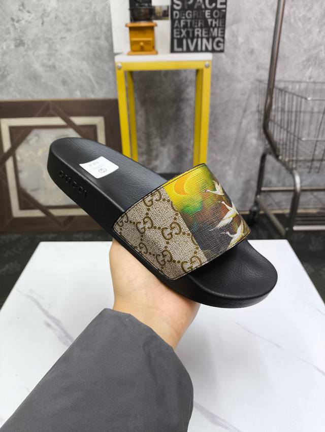 / 实价 情侣款 GUCCI-古奇 百搭休闲拖鞋,进口原版材质,羊皮内里 高档舒适,原版大底轻盈耐磨!纯手工制作,细节决定品质!37-44 35.36.46.47定