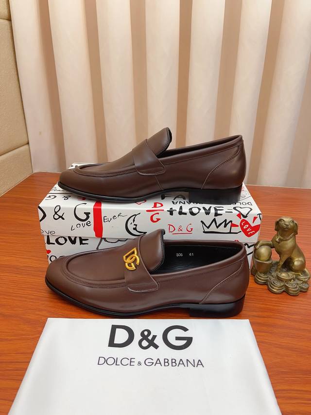 实价: Dg 杜嘉班纳 高端定制皮鞋 鞋面采用进口胎牛皮 原版五金 相信从您见到它的第一眼起就会有眼前一亮的感觉 大气前卫已经不能完全诠释了它的优雅 Aaa级橡胶大底 超舒适 专柜原版套楦 保证了其原有版型及品质 鞋面简约 牛皮内里 保证了其舒适及透气性 一双真正的好鞋才有它特有的灵魂 名门品质 成功人士的首选 正码 38-44 45订做