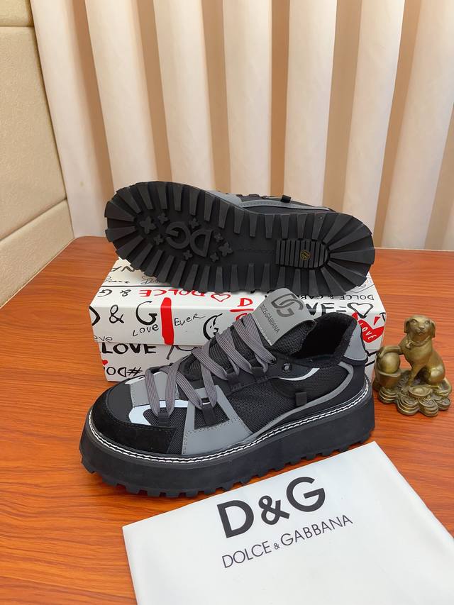 新品Dolce&GabbanaDG高端男士运动休闲鞋。顶级专柜原单货。 原版进口牛皮 多种材质拼接设计进口牛皮内里...