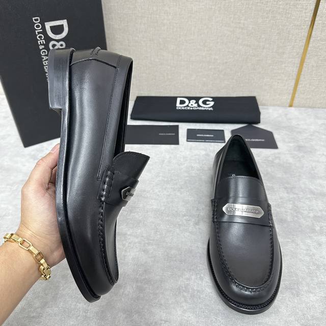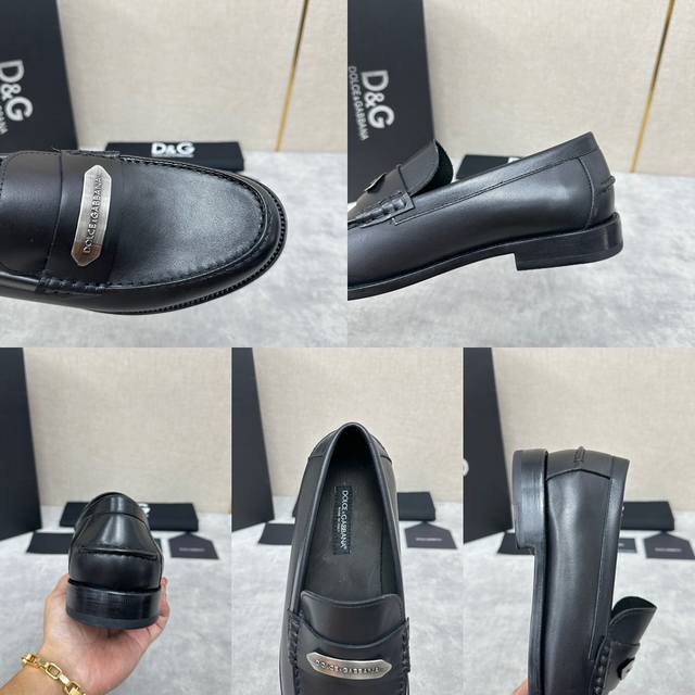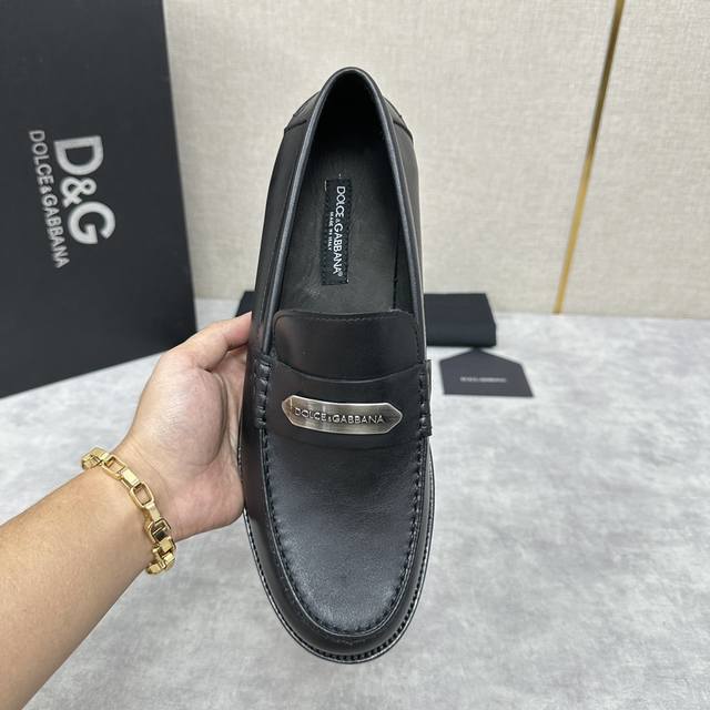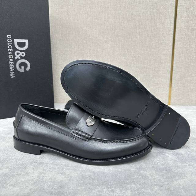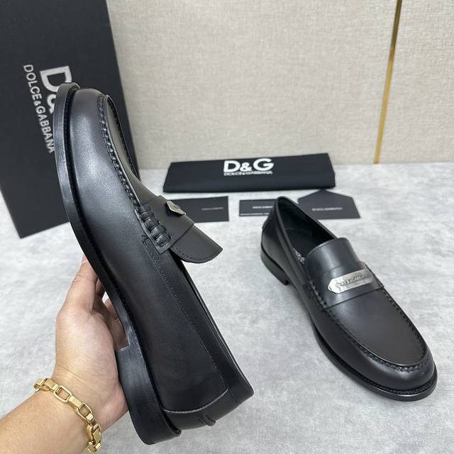 D&G 杜嘉-班纳 Dolce&Gabban* 莫卡辛便鞋 男士乐福鞋皮鞋 以全新版本创意呈现。D G金属logo标志性标牌装饰别具一格。 风格优雅考究,鞋面横带饰点缀 D-G 马衔扣金属标牌徽标。 经典配饰,甄选进口小牛皮 开边珠亮皮 精制而成。内里黑色水染牛皮里 亲肤细腻 饰品牌logo标识 ,鞋面手工缝制 尽显考究手工之美 一脚蹬圆头设计 脚型最舒适的楦型 休闲正装 原版真皮大底 后跟置入橡胶底片 增强抓地性能 原包装发售!