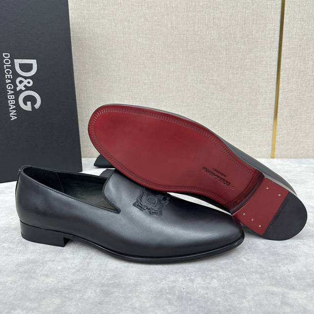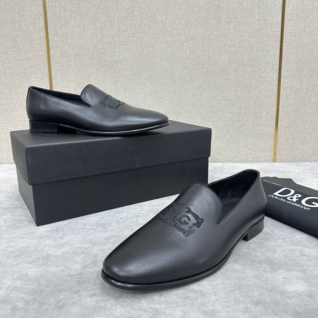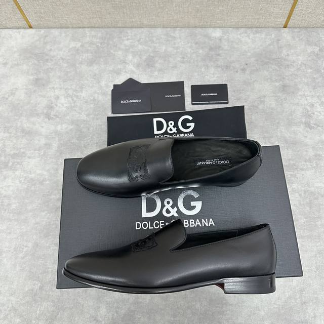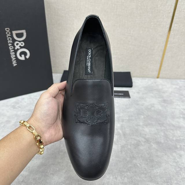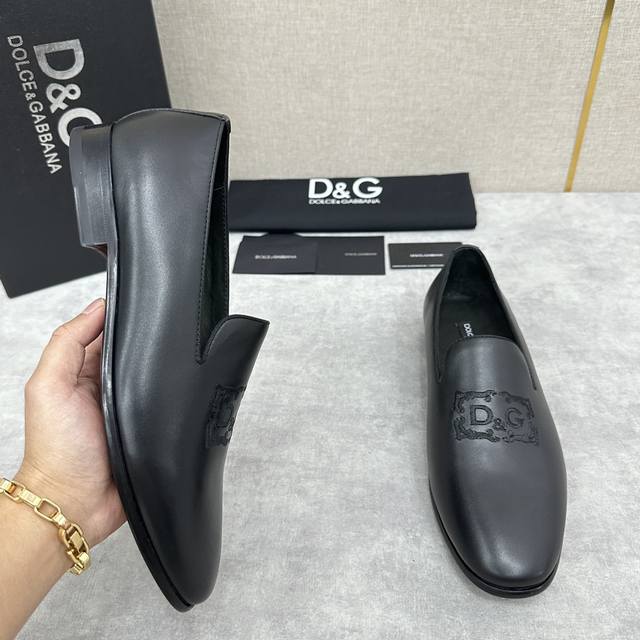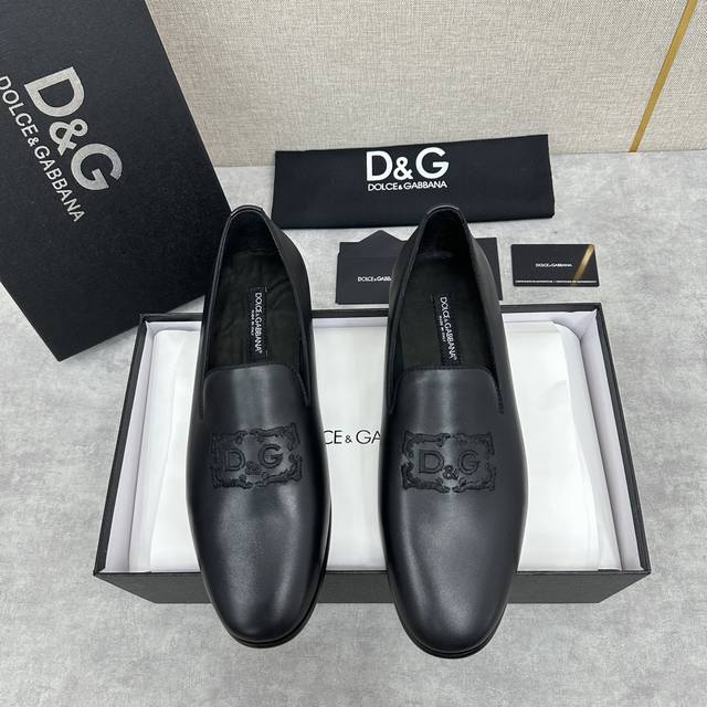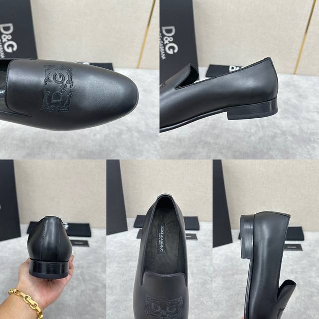 以全新版本创意呈现。电脑绣花d G花边logo标志性标牌装饰别具一格。风格优雅考究,鞋面电绣dg花边徽标。 简约配饰,甄选高丝光绒 小牛皮 翻毛皮d G Logo 压纹精制而成。内里黑色水染牛皮里 亲肤细腻 饰品牌logo标识 ,鞋面手工缝制 缎面饰边 尽显考究手工之美 一脚蹬圆头设计 脚型最舒适的楦型 休闲正装 原版真皮大底 后跟置入橡胶底片 增强抓地性能 轻便百搭鞋款!