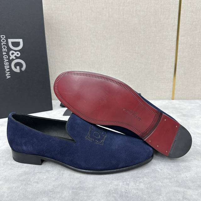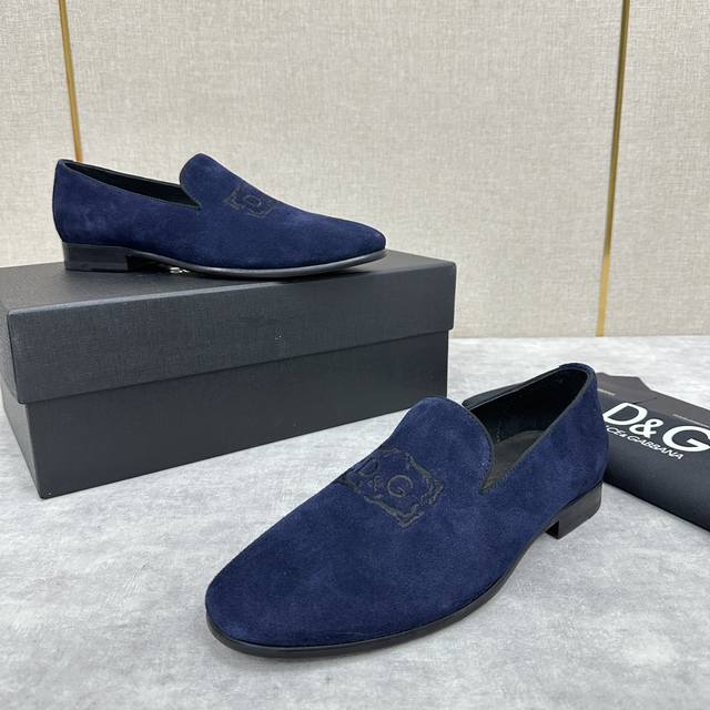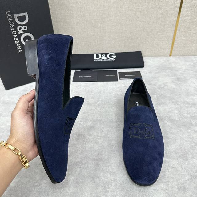以全新版本创意呈现。电脑绣花d G花边logo标志性标牌装饰别具一格。风格优雅考究,鞋面电绣dg花边徽标。 简约配饰,甄选高丝光绒 小牛皮 翻毛皮d G Logo 压纹精制而成。内里黑色水染牛皮里 亲肤细腻 饰品牌logo标识 ,鞋面手工缝制 缎面饰边 尽显考究手工之美 一脚蹬圆头设计 脚型最舒适的楦型 休闲正装 原版真皮大底 后跟置入橡胶底片 增强抓地性能 轻便百搭鞋款!