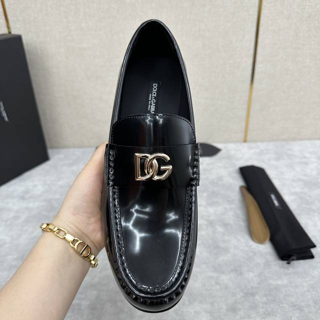D&G Ariosto系列便鞋 官方售价 Rmb ,900 男士乐福鞋皮鞋 风格优雅考究,鞋面横带饰点缀 D-G 交叉造型徽标 简约配饰,甄选小牛皮 开边珠亮皮精制而成 内里水染牛皮里 亲肤细腻 饰品牌logo标识 ,鞋面手工缝制 尽显考究手工之美 一脚蹬圆头设计 脚型最舒适的楦型 休闲正装 原版意大利真皮大底 后跟置入橡胶底片 增强抓地性能 原包装发售!