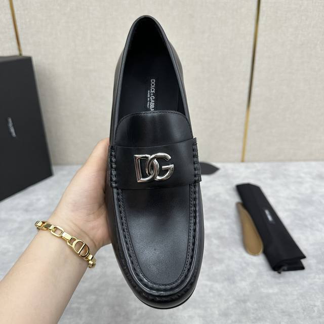 D&G Ariosto系列便鞋 官方售价 Rmb ,900 男士乐福鞋皮鞋 风格优雅考究,鞋面横带饰点缀 D-G 交叉造型徽标 简约配饰,甄选小牛皮 开边珠亮皮精制而成 内里水染牛皮里 亲肤细腻 饰品牌logo标识 ,鞋面手工缝制 尽显考究手工之美 一脚蹬圆头设计 脚型最舒适的楦型 休闲正装 原版意大利真皮大底 后跟置入橡胶底片 增强抓地性能 原包装发售!
