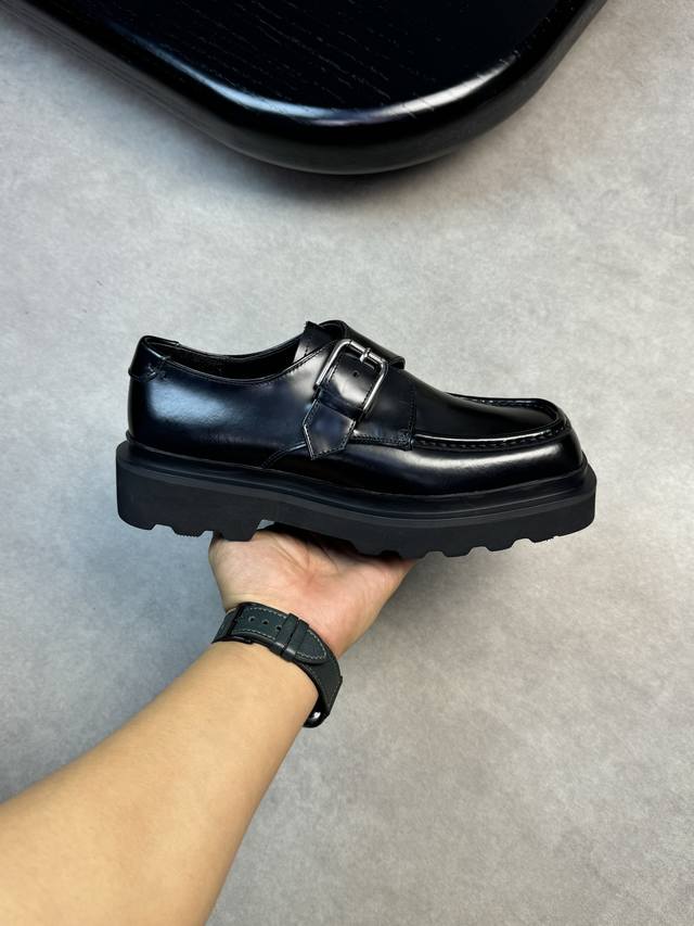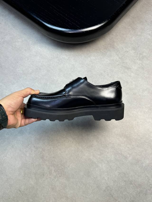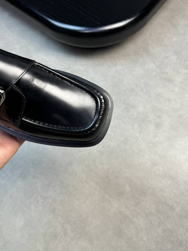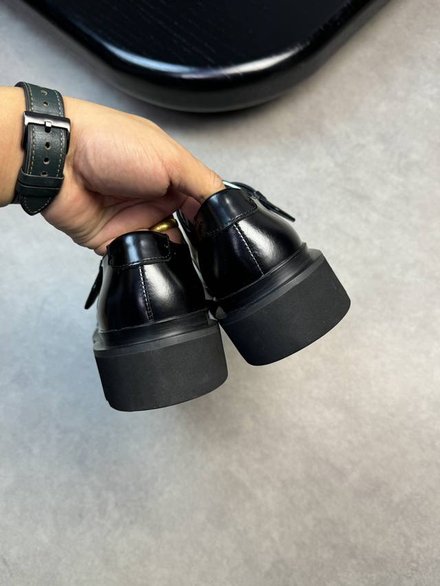 -鞋面:进口开边珠小牛皮、金属扣件、手工串缝马克线