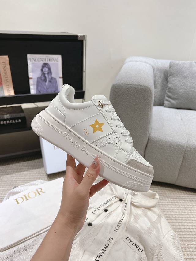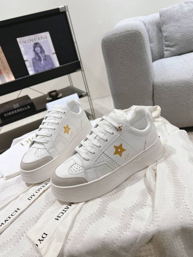 鞋面星星装饰,提升格调。款式轻盈搭配“Christian Dior”标志薄鞋底,四季皆宜,可与各式休闲造型搭配,增添点睛之笔 经典超耐看 鞋面牛皮拼接 原版Ip发泡大底。