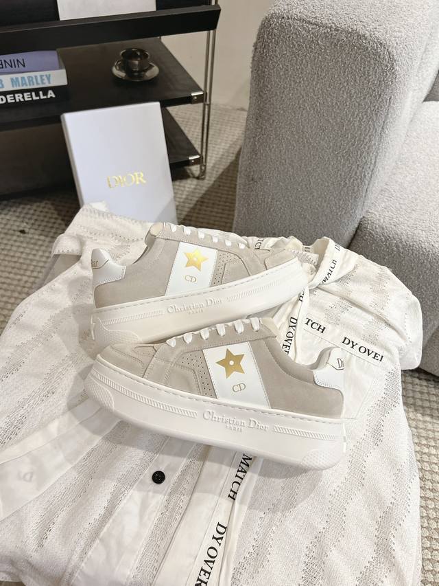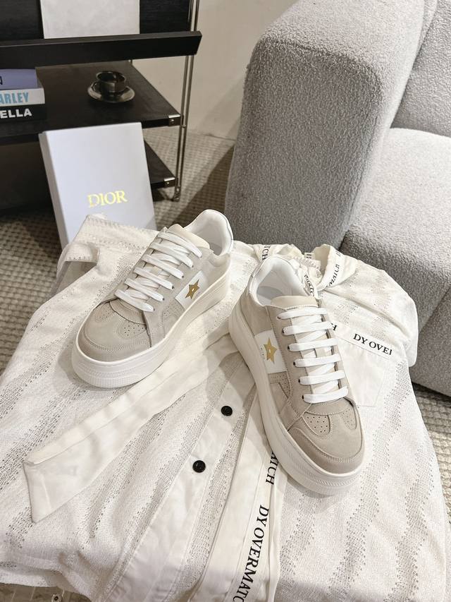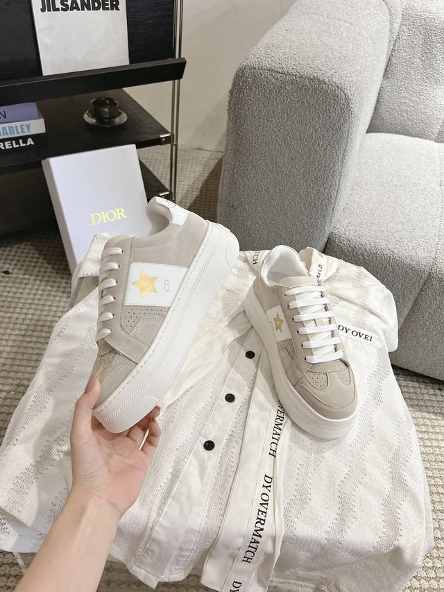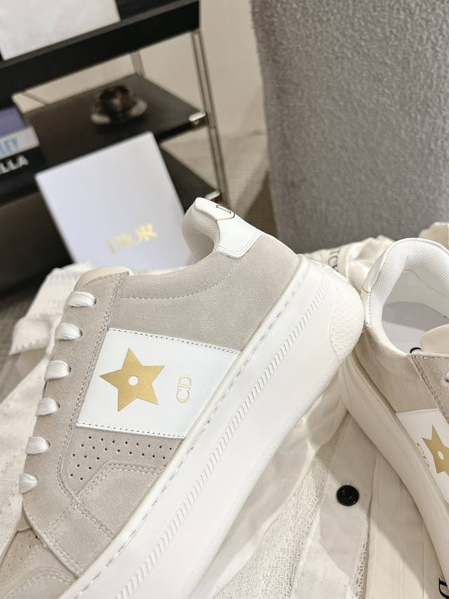 鞋面星星装饰,提升格调。款式轻盈搭配“Christian Dior”标志鞋底,四季皆宜,可与各式休闲造型搭配,增添点睛之笔 经典超耐看 鞋面牛皮拼接 原版Ip发泡大底。