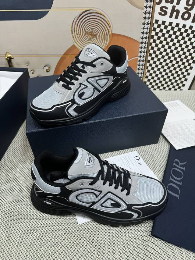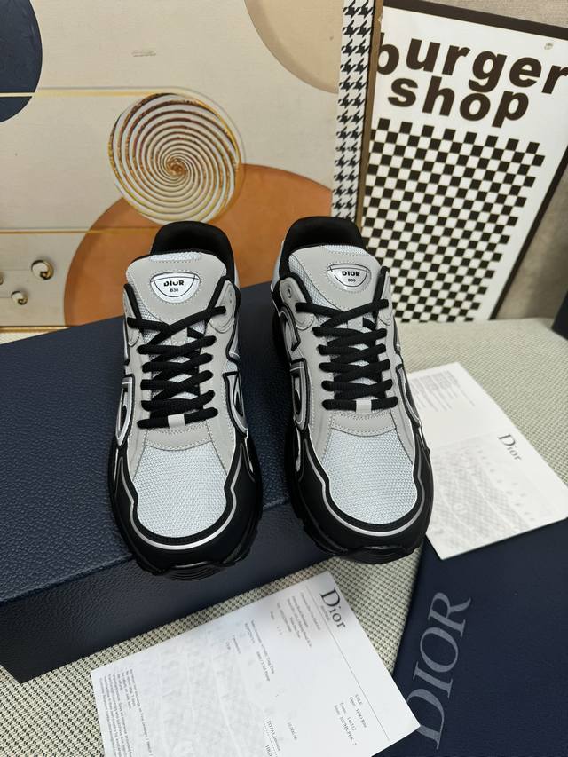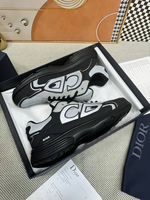 / 代购品质dior 迪奥 新款 B30摩登运动 明星同款厚底系带情侣款休闲跑鞋 白搭立体字母logo夜光拼色老爹鞋 市面顶级高端版本 面料:进口定制丝绸牛皮拼接网