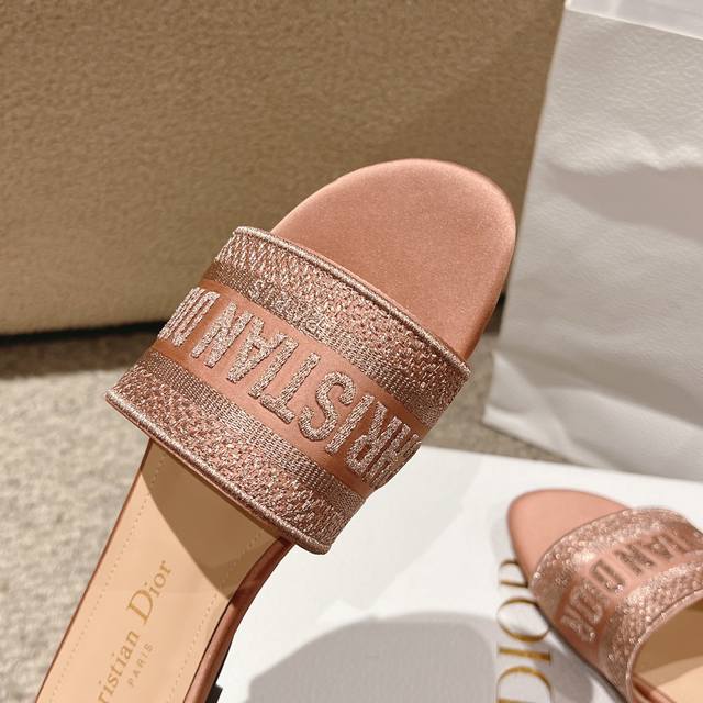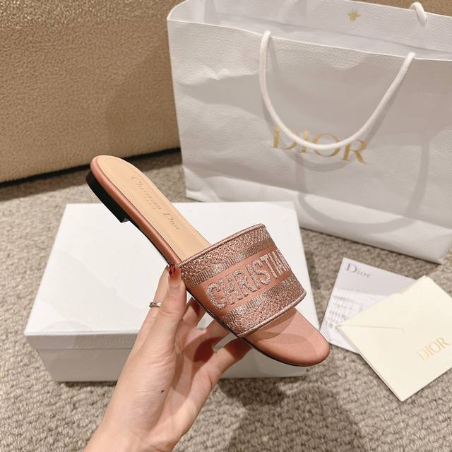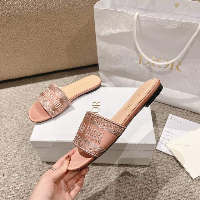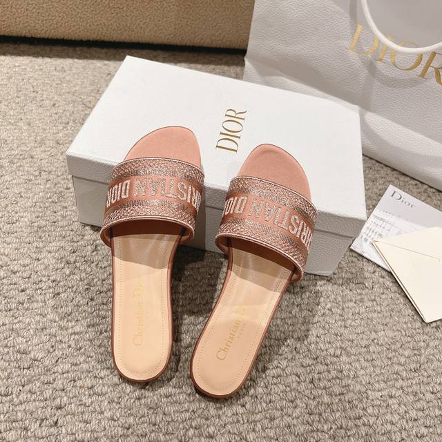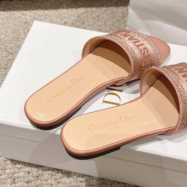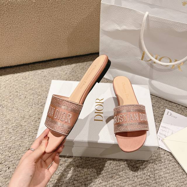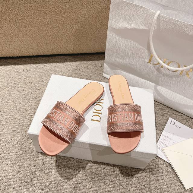 迪奥logo 电脑绣帆布平底拖鞋,金属光泽线刺绣与丝绸搭配,经典上乘美艳力作 Dior专柜最火系列 兼备气质 时尚 经典耐看的设计风格 上脚效果特别美!原版复刻制作!