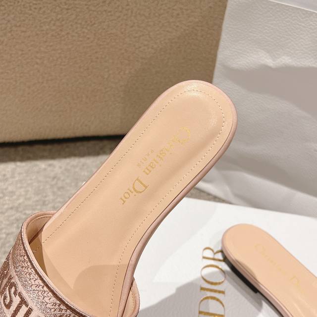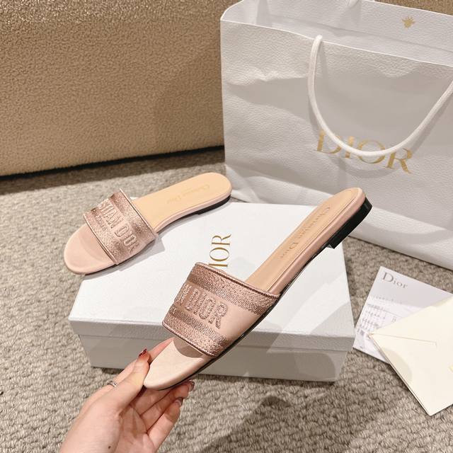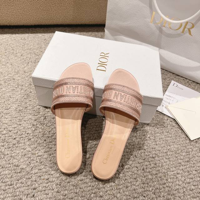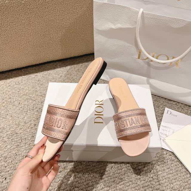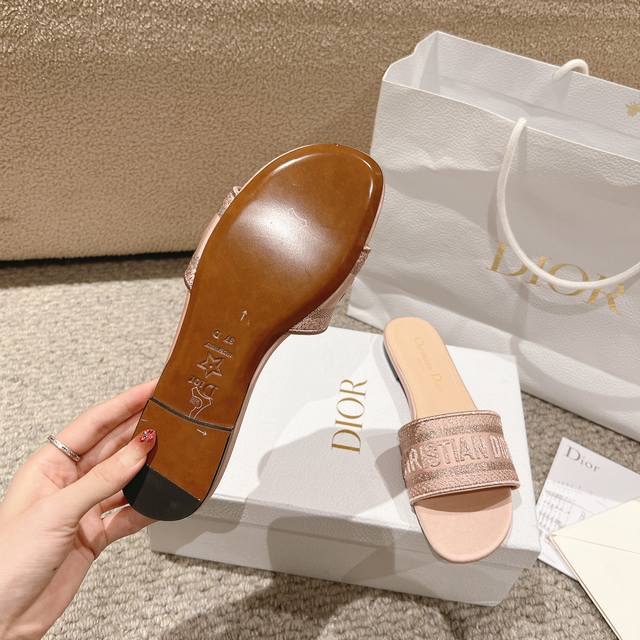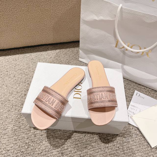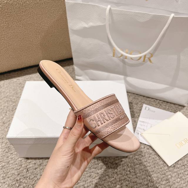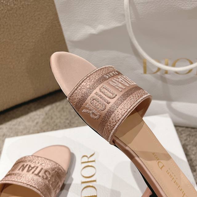 迪奥logo 电脑绣帆布平底拖鞋,金属光泽线刺绣与丝绸搭配,经典上乘美艳力作 Dior专柜最火系列 兼备气质 时尚 经典耐看的设计风格 上脚效果特别美!原版复刻制作!