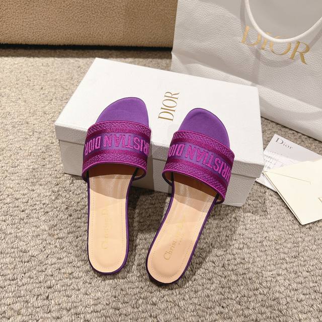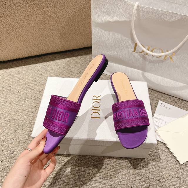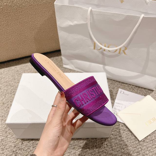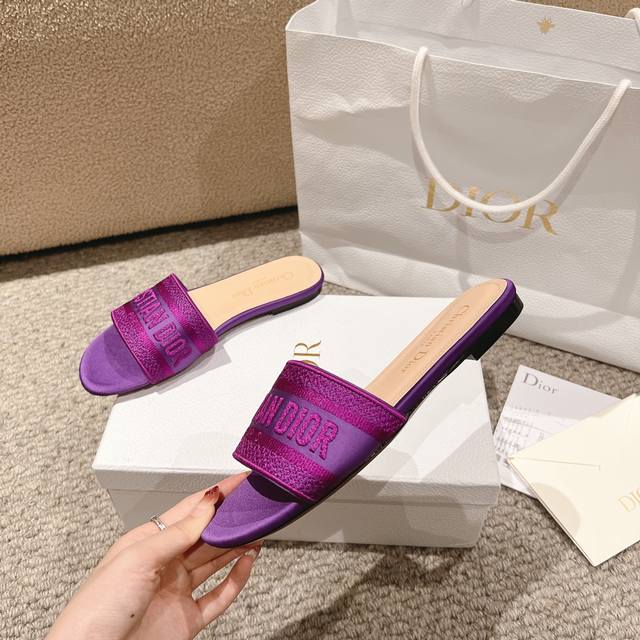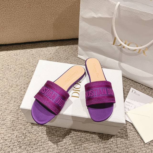迪奥logo 电脑绣帆布平底拖鞋,金属光泽线刺绣与丝绸搭配,经典上乘美艳力作 Dior专柜最火系列 兼备气质 时尚 经典耐看的设计风格 上脚效果特别美!原版复刻制作!