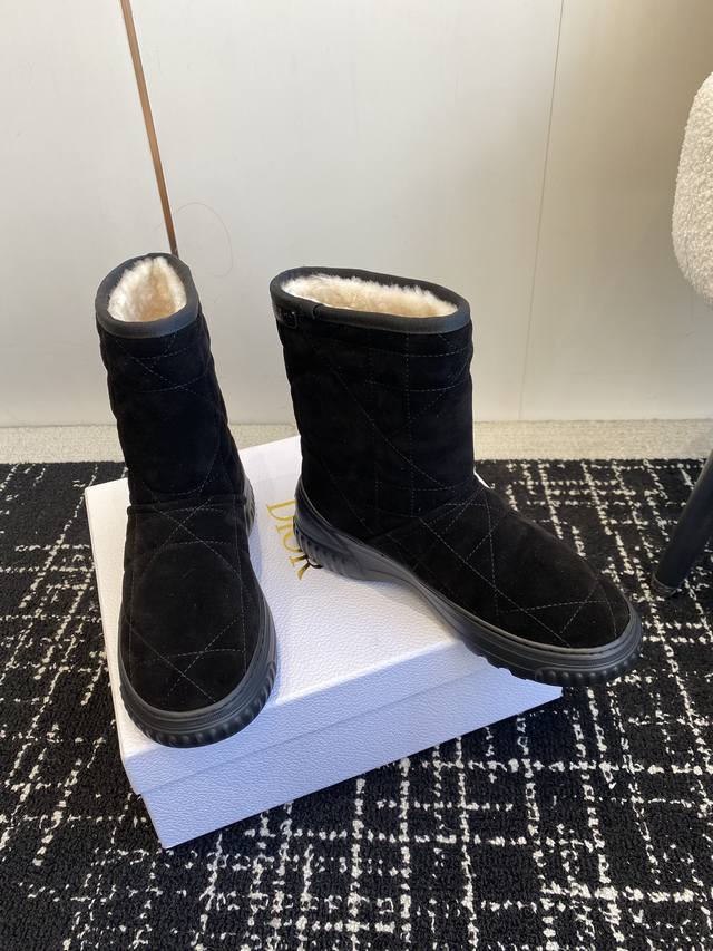 迪奥dior 24Ss 秋冬 雪地靴 半拖 这款dior 及踝靴巧妙融合 Dior Chez Moi 系列元素