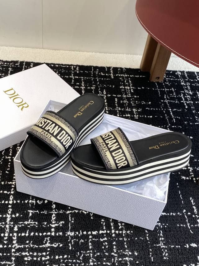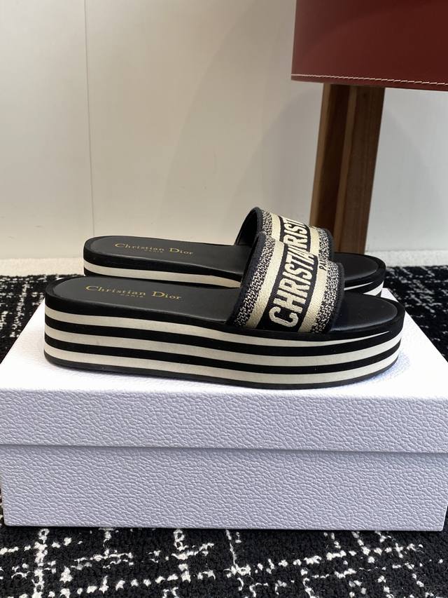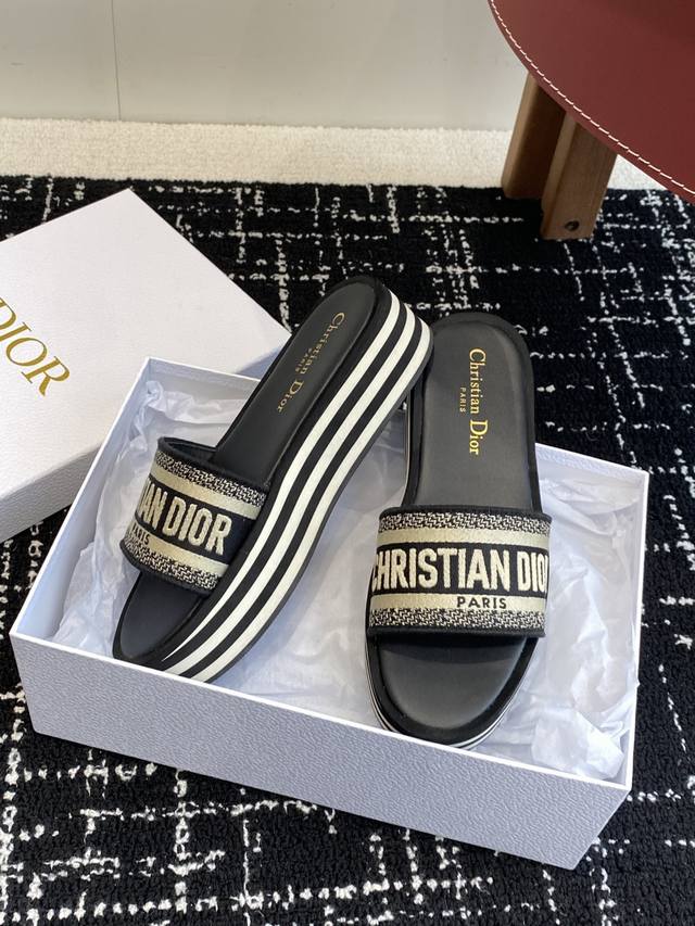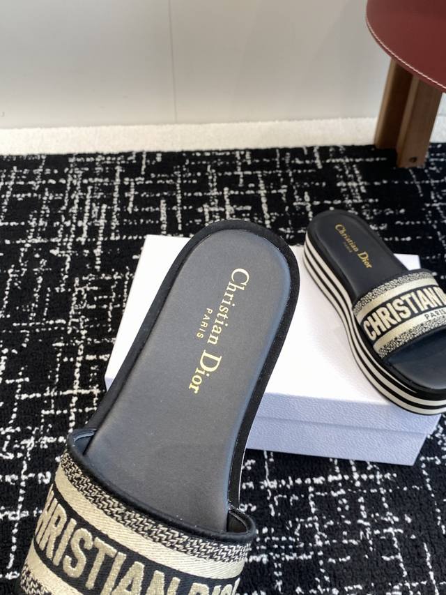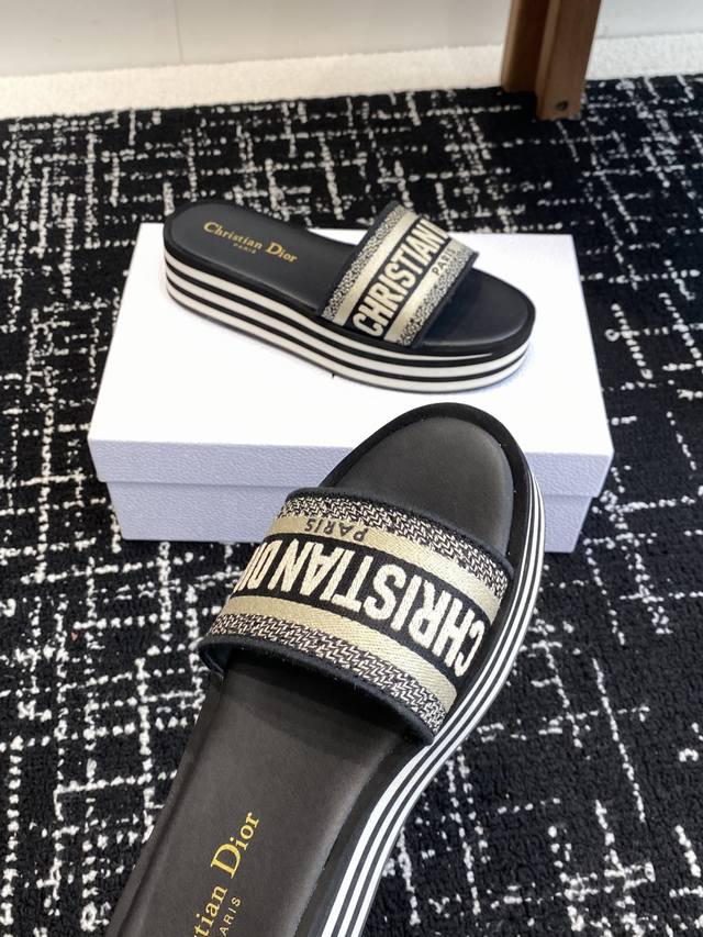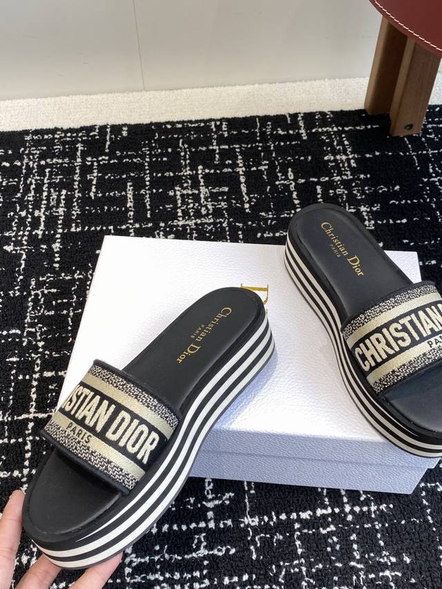Cd字母Logo立体刺绣厚底圆头露趾拖鞋 原版开发市面顶级版本,脚感柔软细腻,舒适度极高。