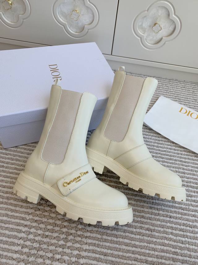 代购级dior 迪奥d-Quest新品中筒切尔西 机车风短靴
