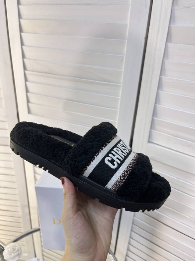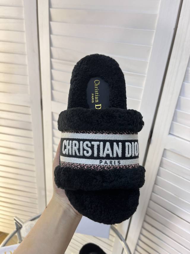 冲量价: 迪奥爆款 网红毛拖 Christian Dior火遍全网,出镜率超高的品牌,独家自主开发款 第一手出货 网红主播:主推爆款! 面料:原版卷毛 进口刺绣