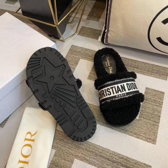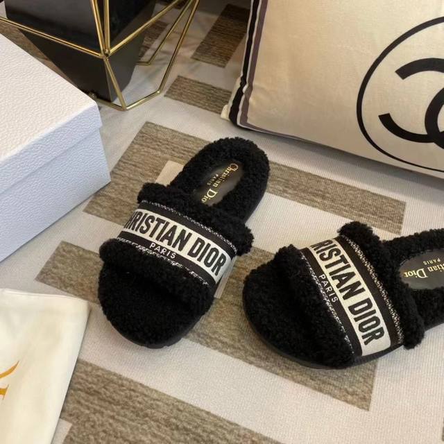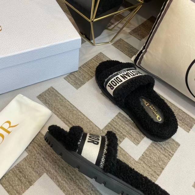 / 冲量价: Dior 迪奥毛拖鞋系列 23厚底毛拖鞋 时尚明星网红爆款 舒适百搭羊毛拖鞋, 平底防滑底 更胜一筹 梭织羊毛 原版电绣字母 原版底 35-40码 4
