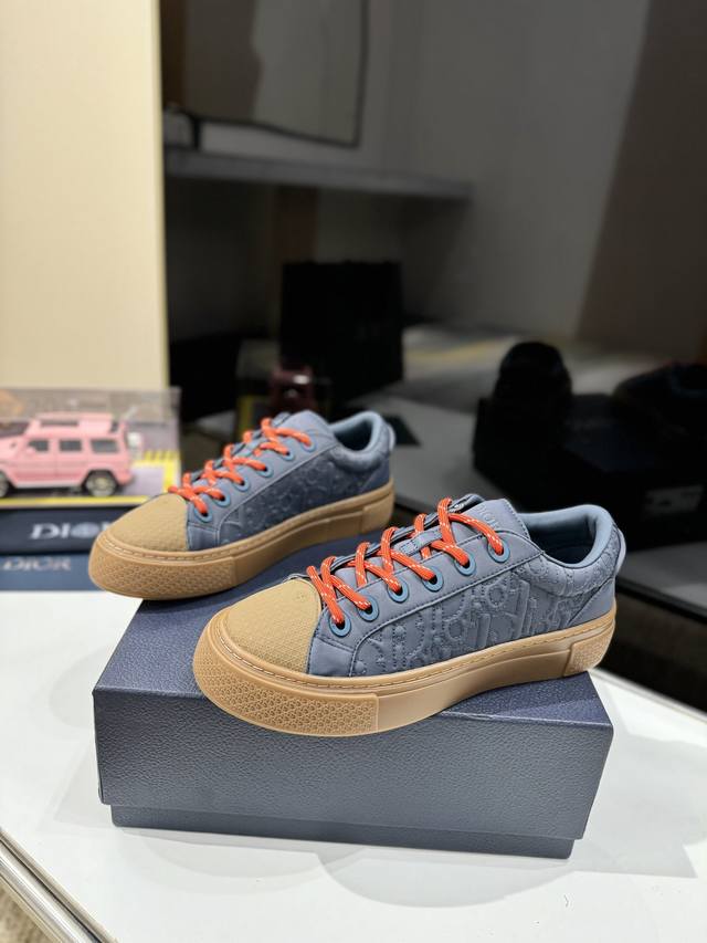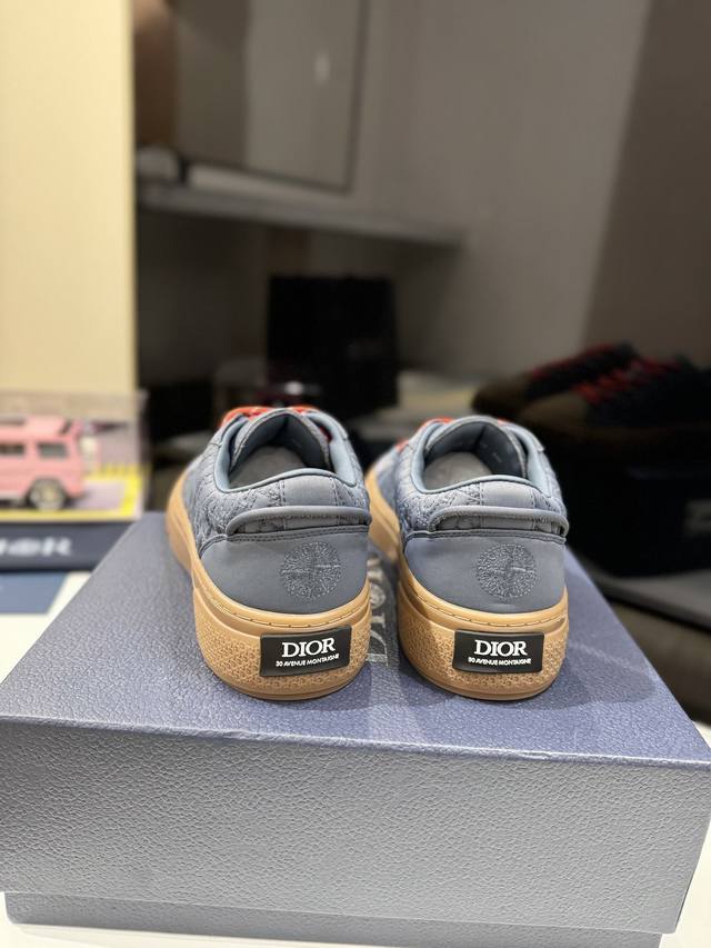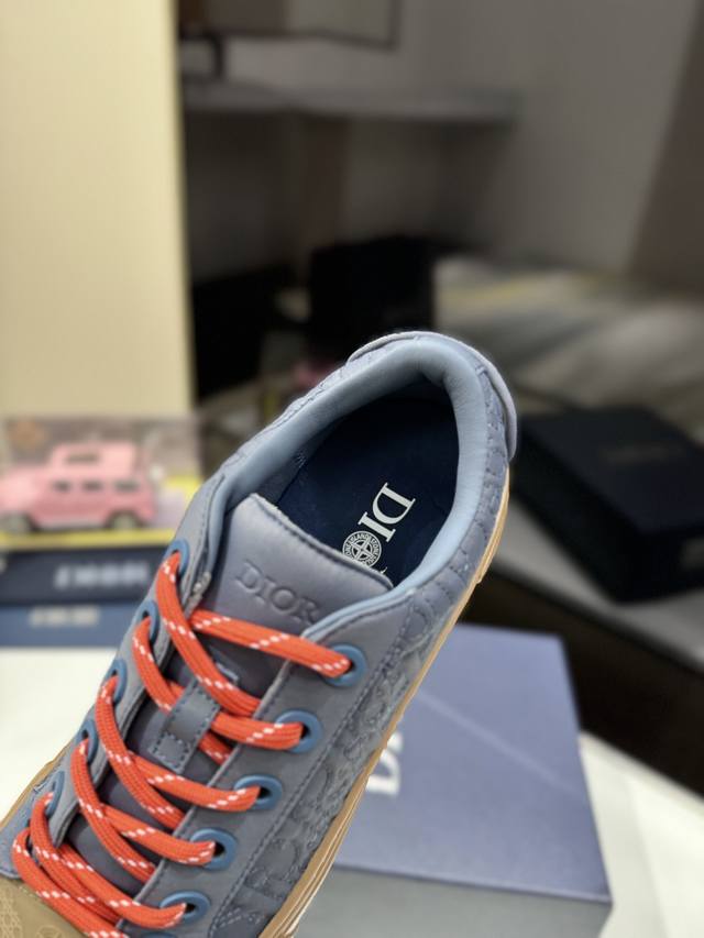 迪奥 2024秋冬高定系列新款男鞋 Cd 果冻色平底休闲鞋 Dior And Stone Island B33圆头系带帆布滑板鞋 明星同款oblique字母logo刺绣复古拼色运动鞋 市面顶级高端版本
