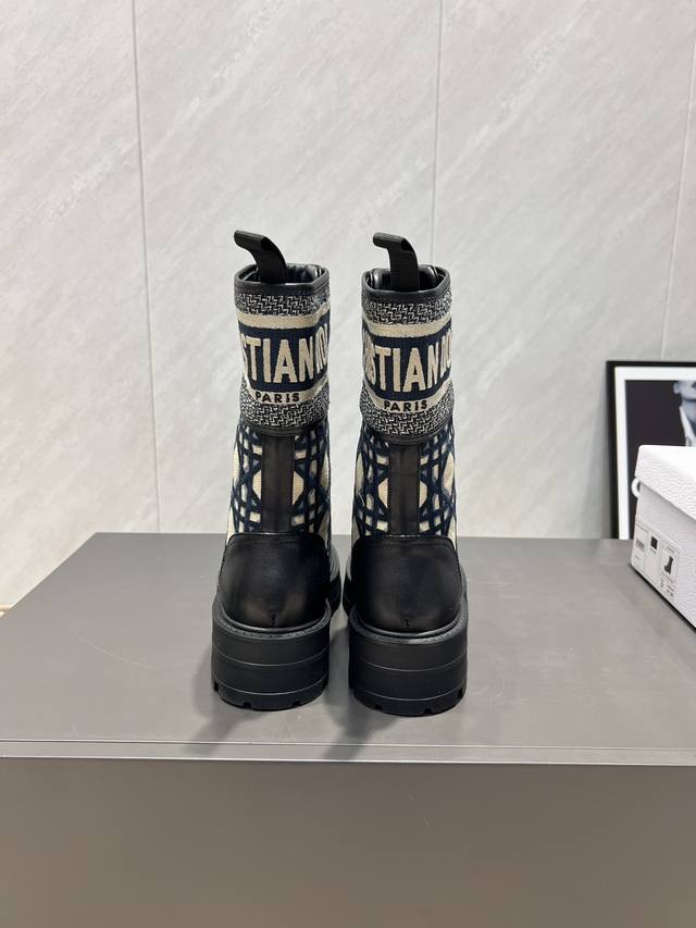 圆头织布拼色厚底短靴