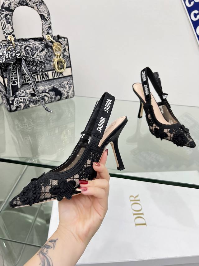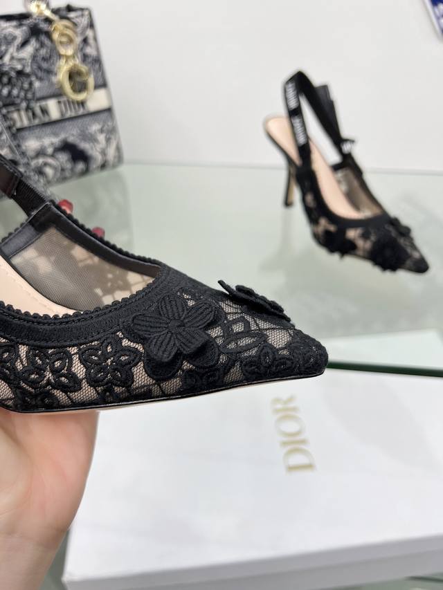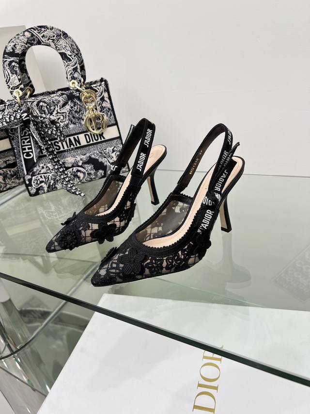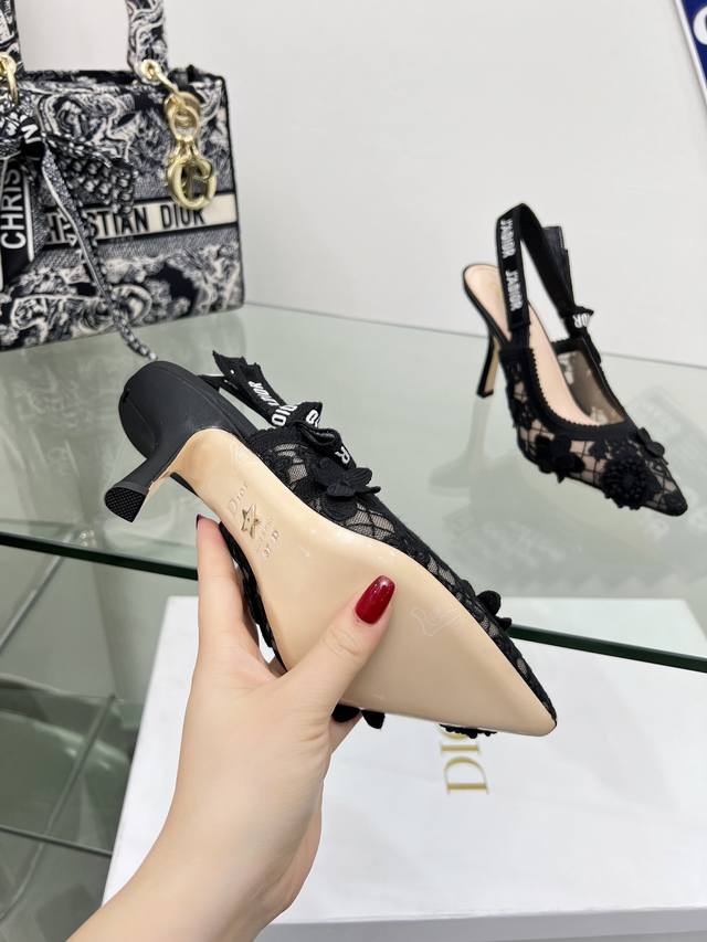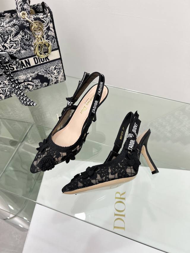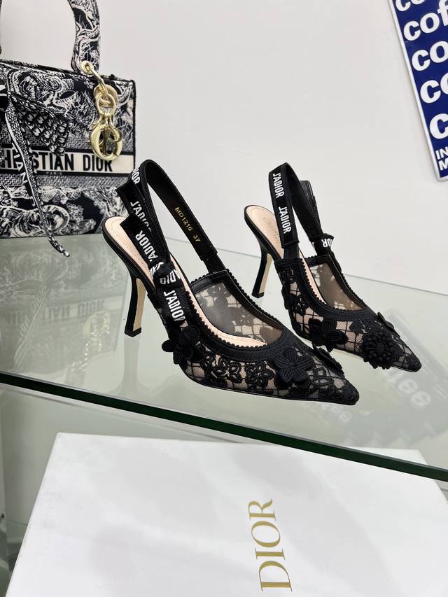 迪奥 Dior 春夏最新色 J'Adior 织带后空凉鞋 五朵花网纱款