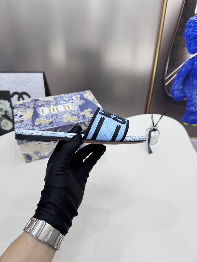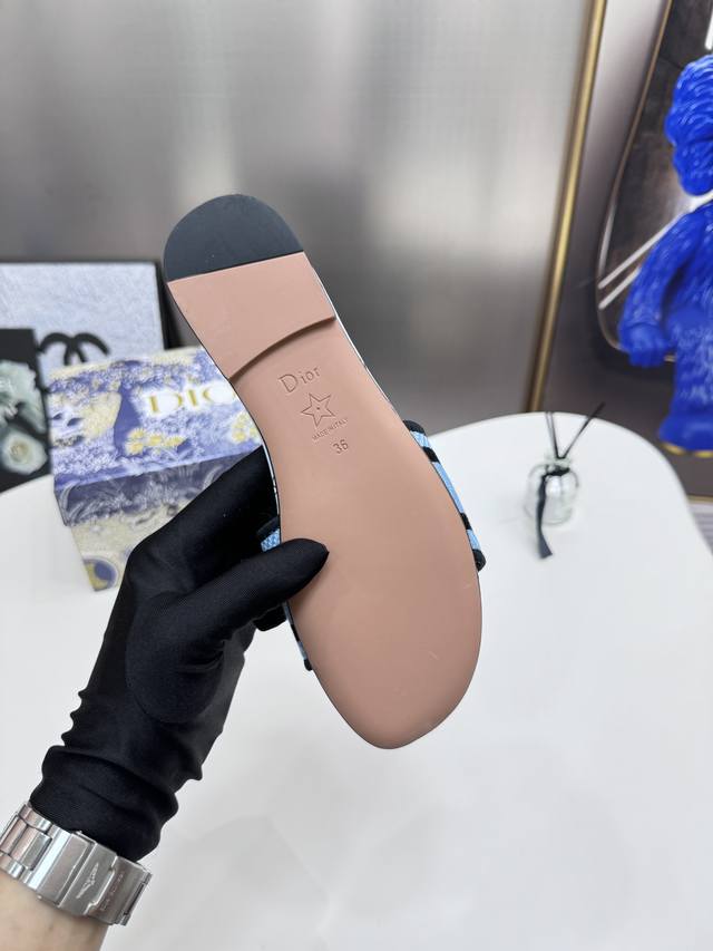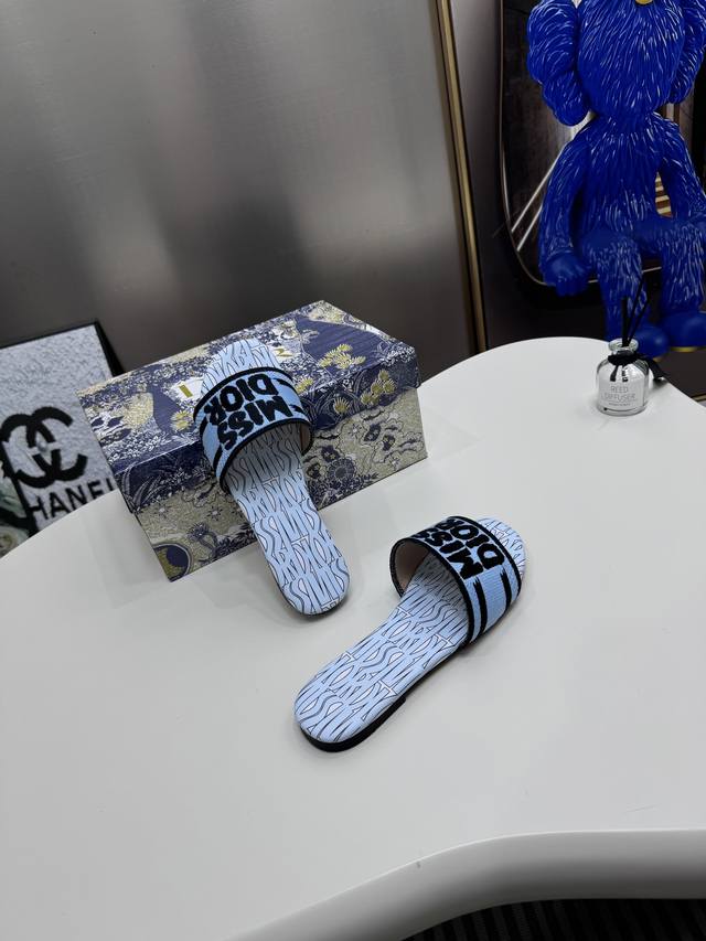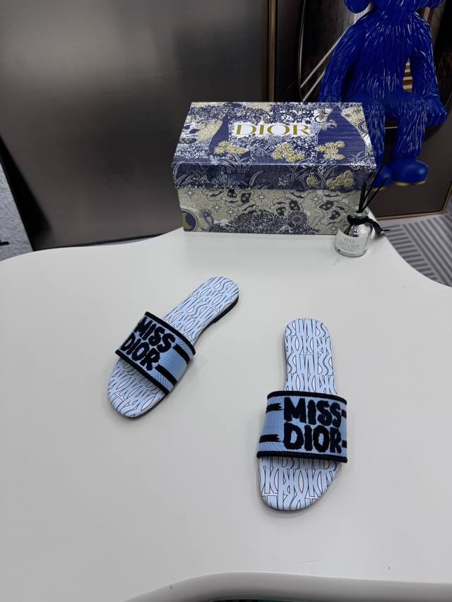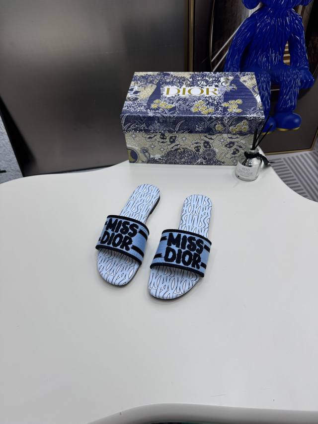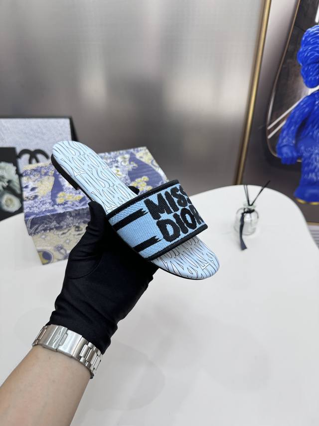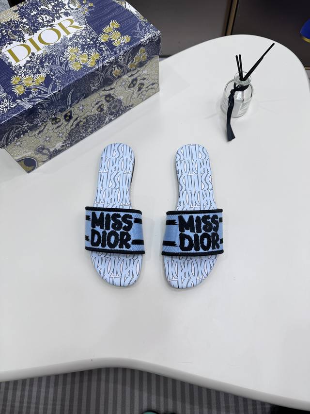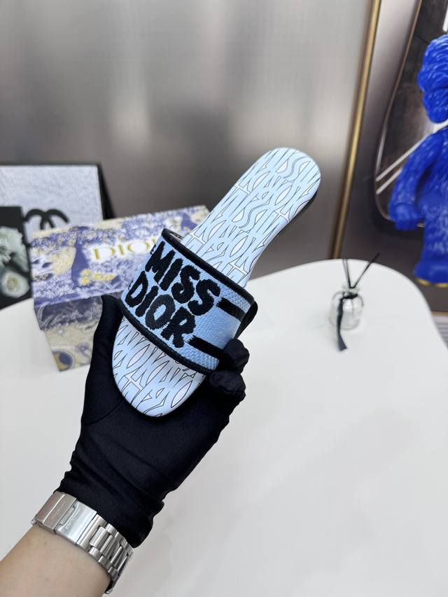 新款迪奥miss Dior 系列平底拖鞋,经典上乘美艳力作 Dior专柜最火春夏系列 兼备气质 时尚 经典耐看的设计风格 上脚效果特别美!原版复刻制作!