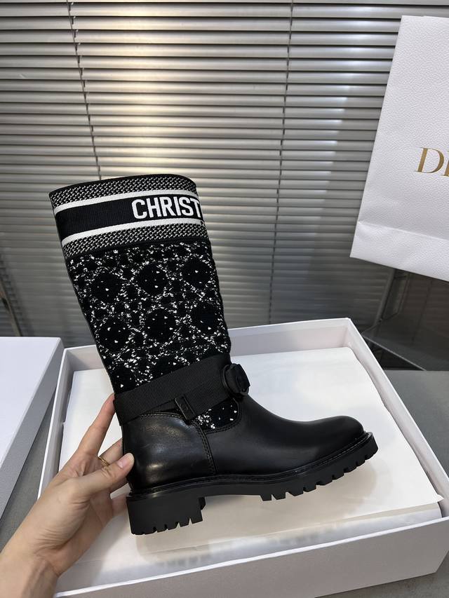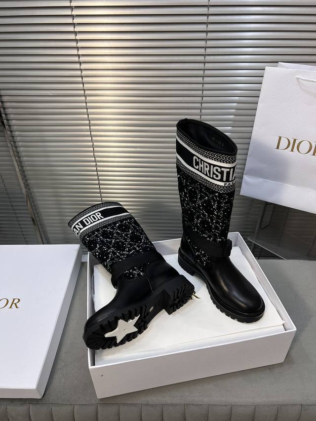 出厂 Dior迪奥新款 Major涂鸦 骑士靴 帅气靴子采用别具一格的设计元素打造醒目的外观 采用黑色科技面料和牛皮革打造,可轻松穿脱。从 Dior Book