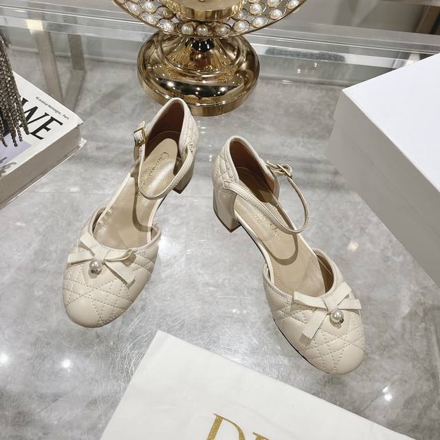 出厂 Dior*迪奥 Vs 秋季中空菱格纹凉新款系列 颜色超艳 搭配毫无压力 怎么出可以美美出场 脚背一字后包设计 更显优雅 年轻 圆头小珍珠单鞋 面料:原版定