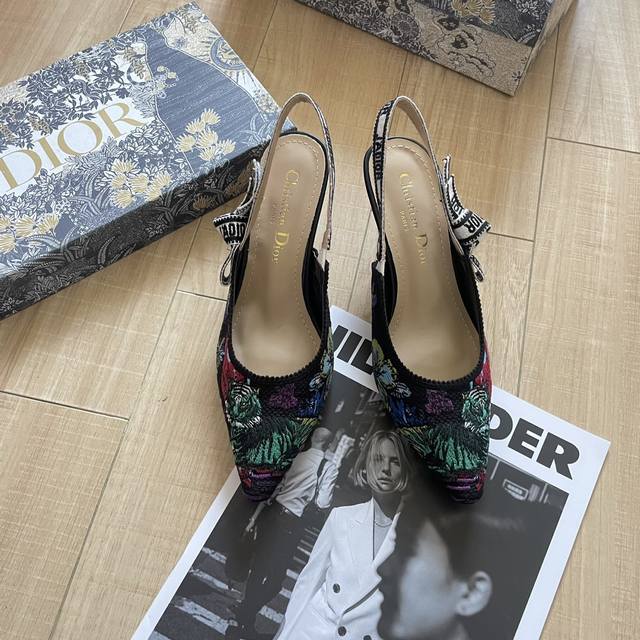 官网同步 独家首发 迪奥23Sd-秋冬刺绣猫跟凉鞋