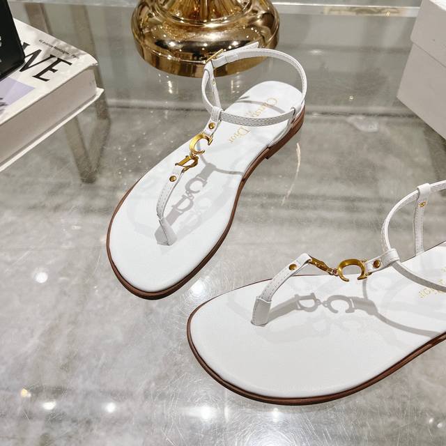 出厂 Dior 迪奥 2025夏季新款cd装饰夹趾平底凉鞋,正品买版开模,纯铜五金里外原版定制进口羊皮,意大利真皮大底,上脚时尚秀气百搭 清爽夏天一双必备的人字