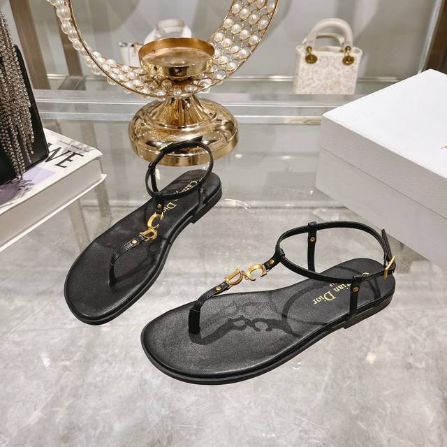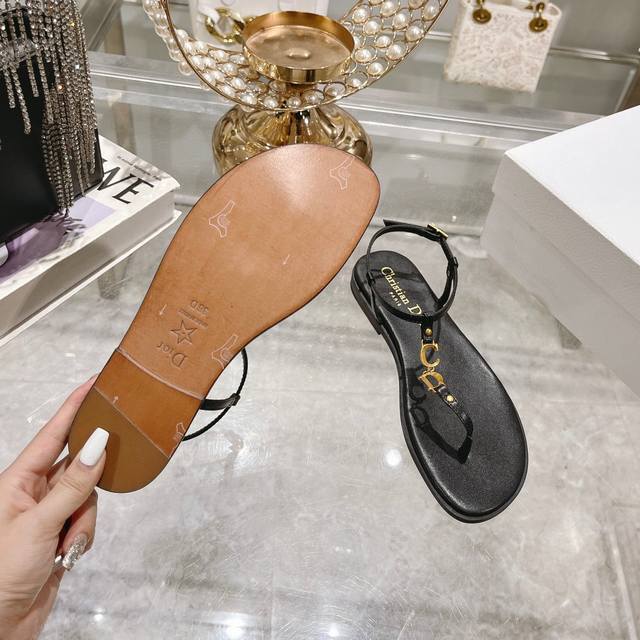 / 出厂 Dior 迪奥 2025夏季新款cd装饰夹趾平底凉鞋,正品买版开模,纯铜五金里外原版定制进口羊皮,意大利真皮大底,上脚时尚秀气百搭 清爽夏天一双必备的人字