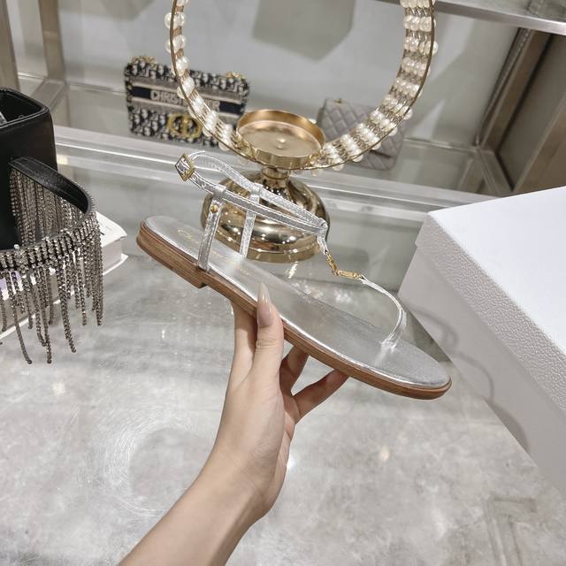 出厂 Dior 迪奥 2025夏季新款cd装饰夹趾平底凉鞋,正品买版开模,纯铜五金里外原版定制进口羊皮,意大利真皮大底,上脚时尚秀气百搭 清爽夏天一双必备的人字
