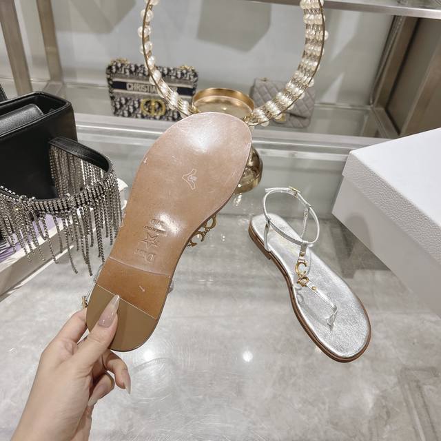 / 出厂 Dior 迪奥 2025夏季新款cd装饰夹趾平底凉鞋,正品买版开模,纯铜五金里外原版定制进口羊皮,意大利真皮大底,上脚时尚秀气百搭 清爽夏天一双必备的人字
