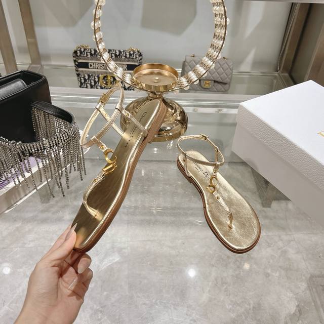 / 出厂 Dior 迪奥 2025夏季新款cd装饰夹趾平底凉鞋,正品买版开模,纯铜五金里外原版定制进口羊皮,意大利真皮大底,上脚时尚秀气百搭 清爽夏天一双必备的人字