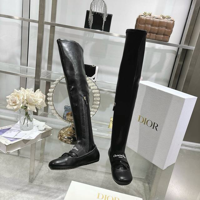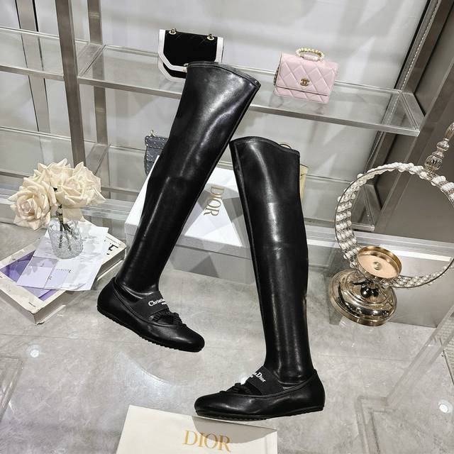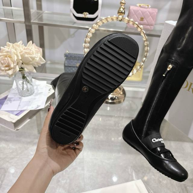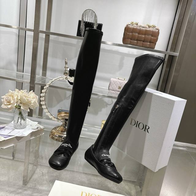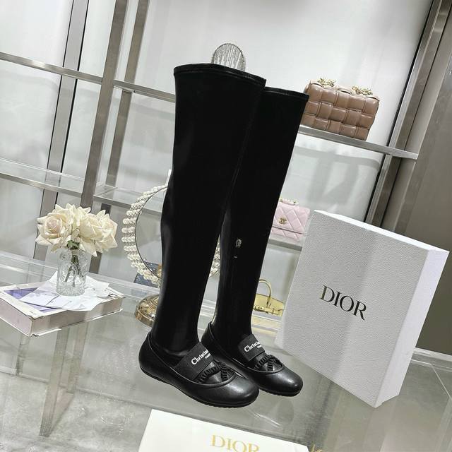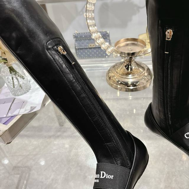 出厂 Dior 迪奥 25秋冬新款朋克风平底橡胶弹力高筒骑士女长靴 明星同款刺绣字母Logo内侧附带拉链设计上脚都很方便舒适 筒长22寸