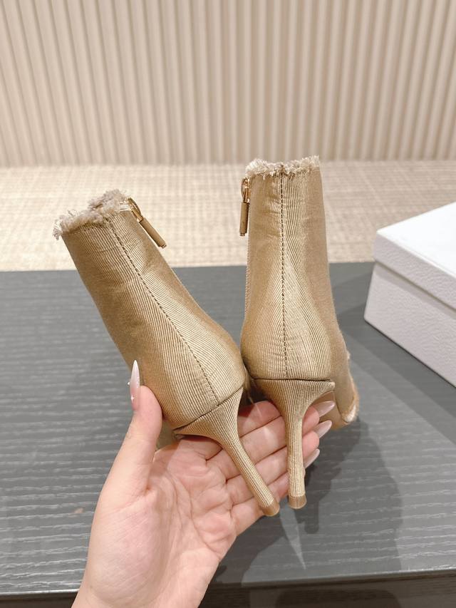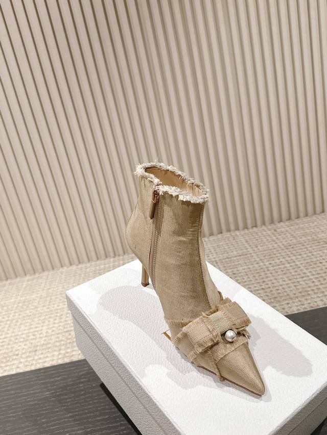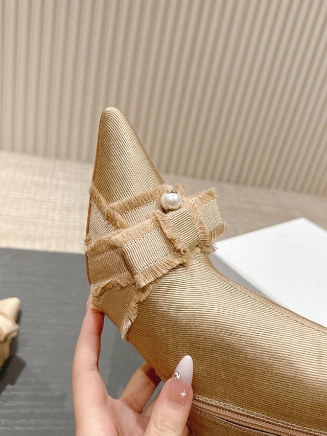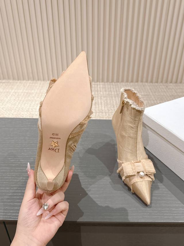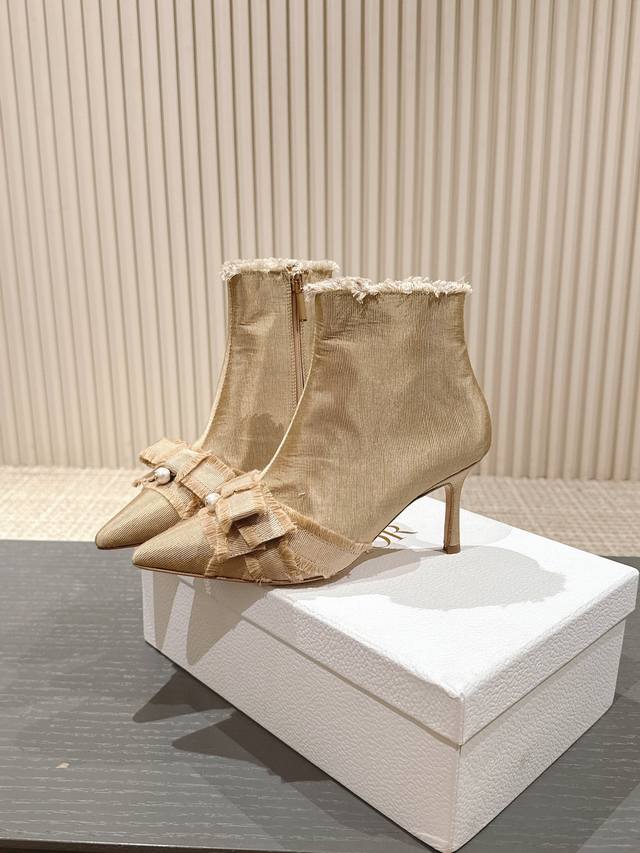 J'Adior流苏织带女鞋 Dior 迪奥 秋冬走秀新款adiorble女靴 Cd明星同款时尚流苏蝴蝶结尖头珍珠字母logo五金扣高跟马丁短靴 市面顶级高端版本