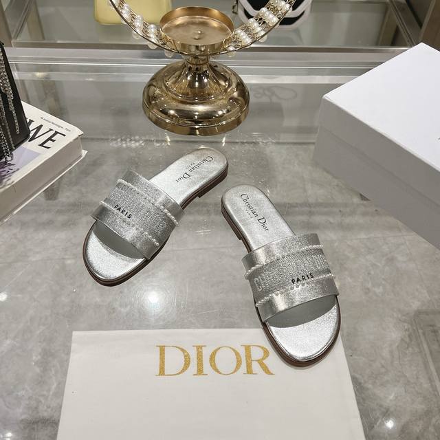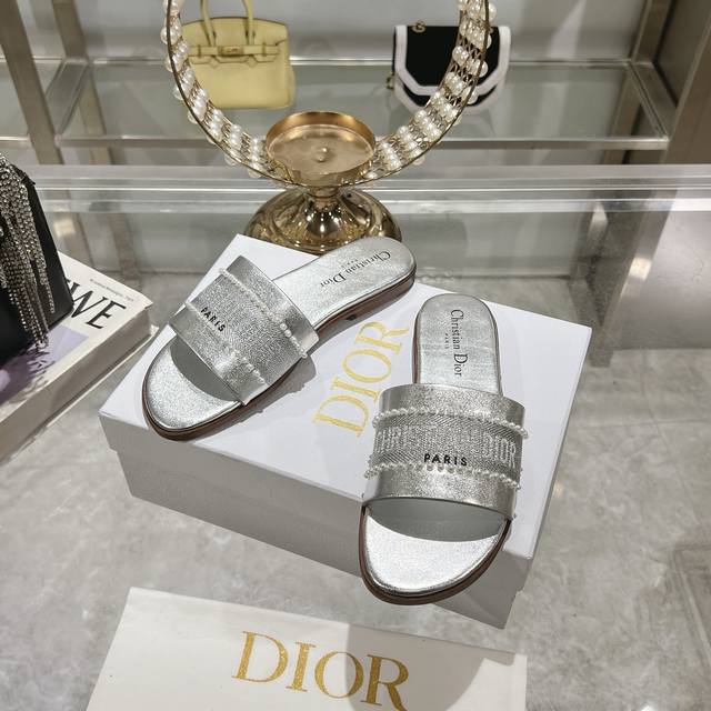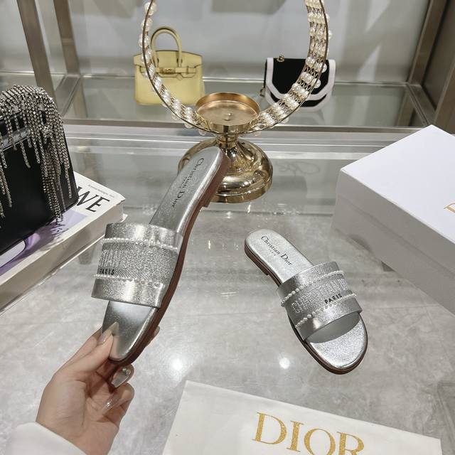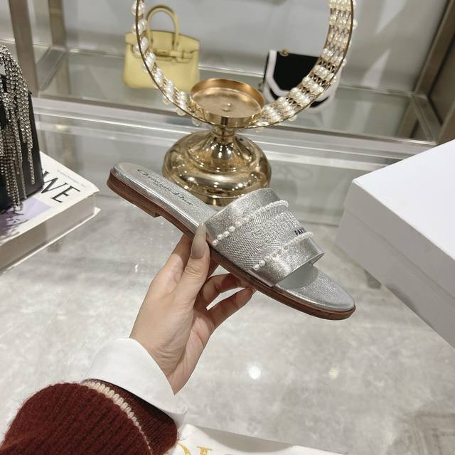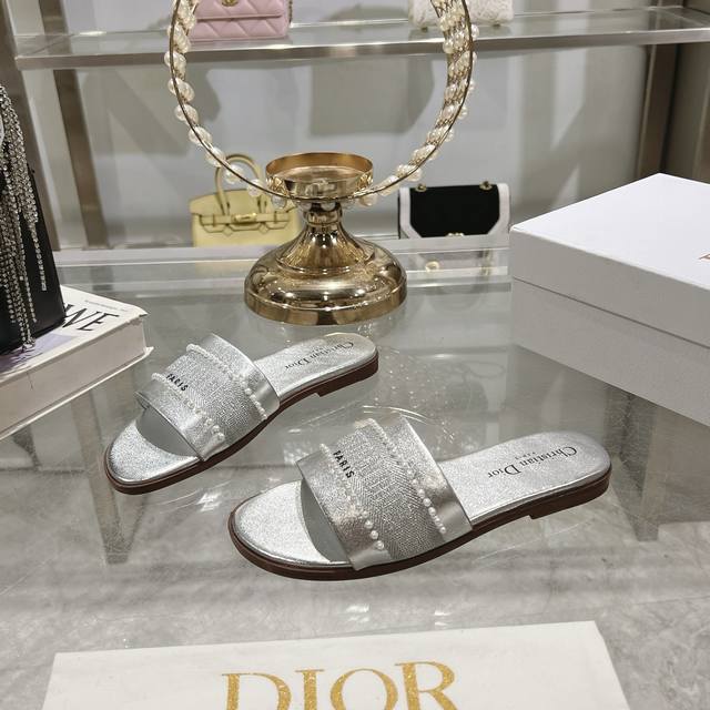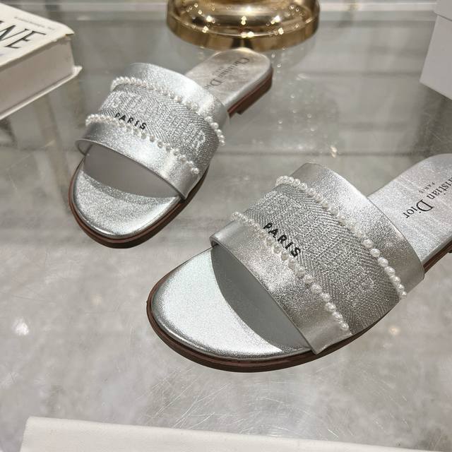 出厂330Dior 迪奥 25Ss春夏新款珍珠 D-Lane 平底圆头 露趾拖鞋