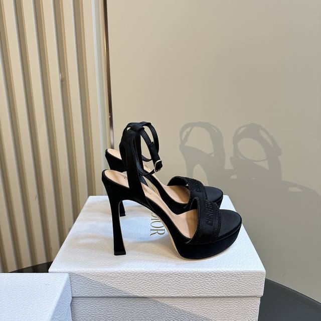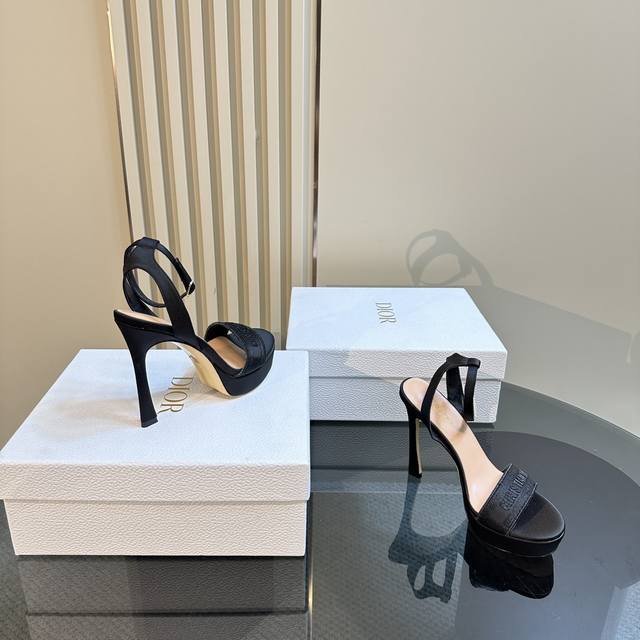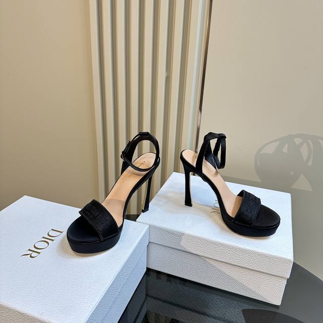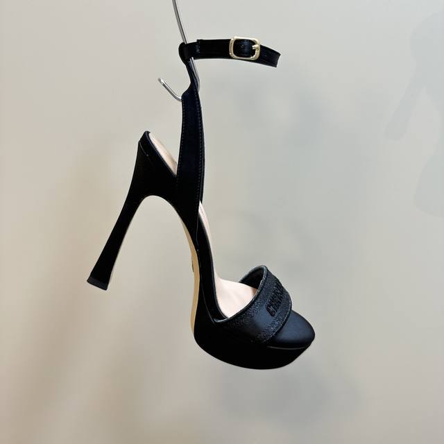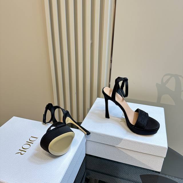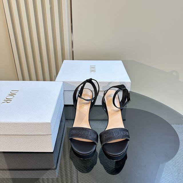 / 厂价 Dior 迪奥24S新品 防水台一字带高跟凉鞋 面料采用进口织布 内里踮脚均为羊皮 意大利进口牛皮大底 跟高:12Cm 水台:3Cm 码数:35-39 4