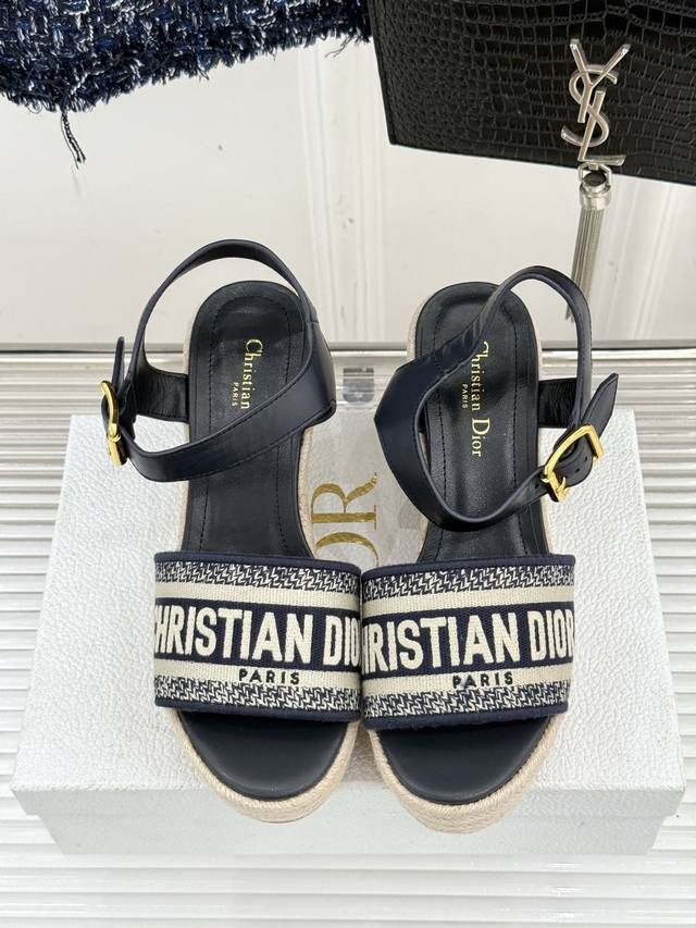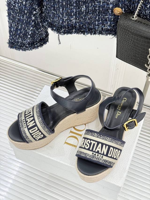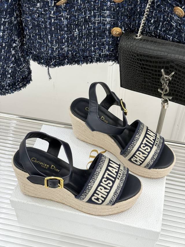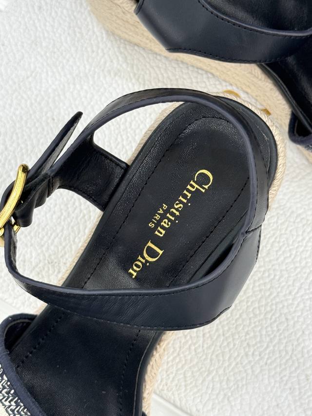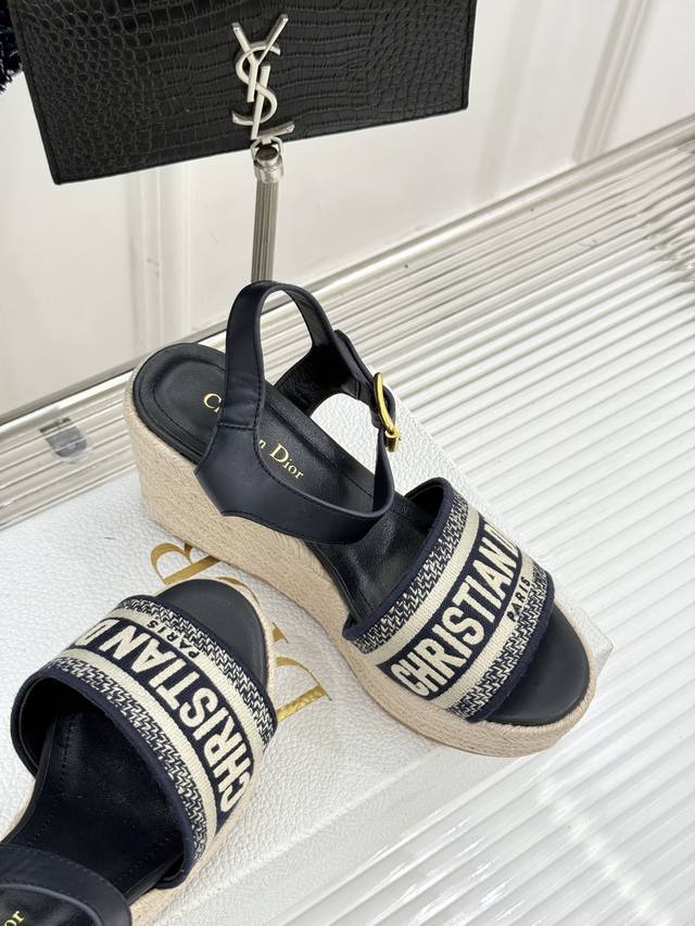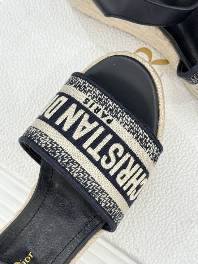 Dior 迪奥25Wf新品字母刺绣麻绳厚底坡跟凉鞋
