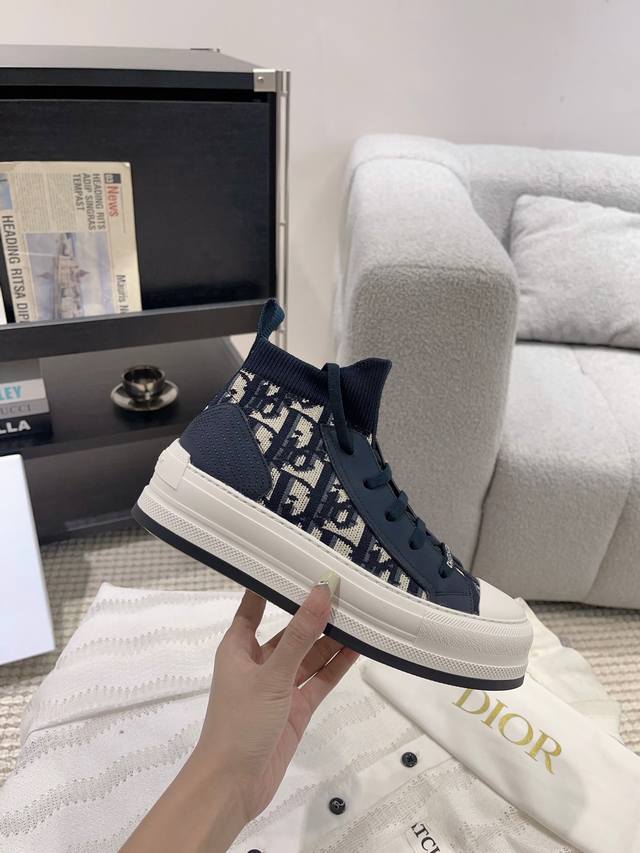 23Ss Dior Oblique 穿孔科技针织高筒运动鞋