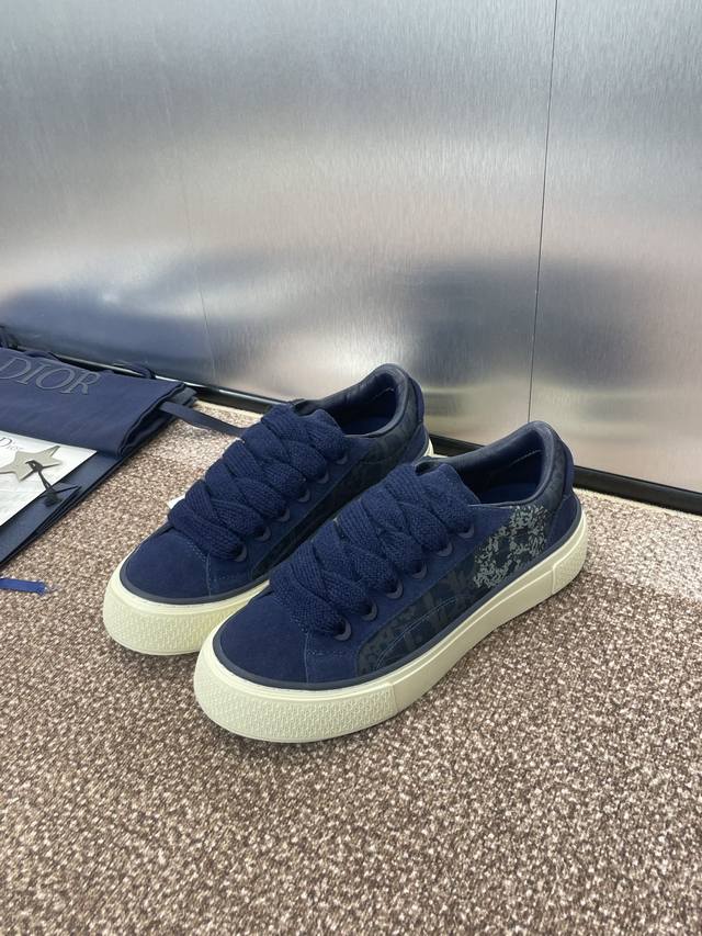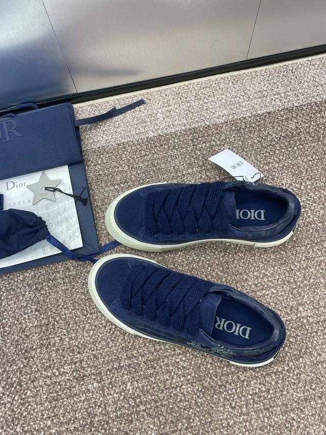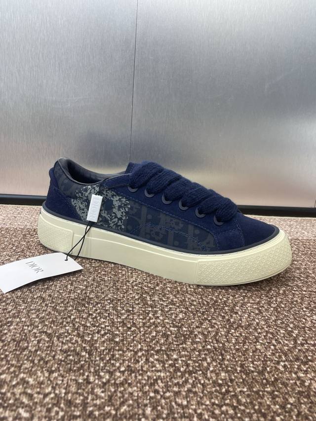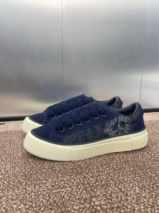 迪奥 2024秋冬高定系列新款 Cd 果冻色情侣款平底休闲鞋 Dior X Travis B33联名款圆头系带帆布滑板鞋 明星同款oblique字母logo刺绣复古拼色运动鞋 市面顶级高端版本